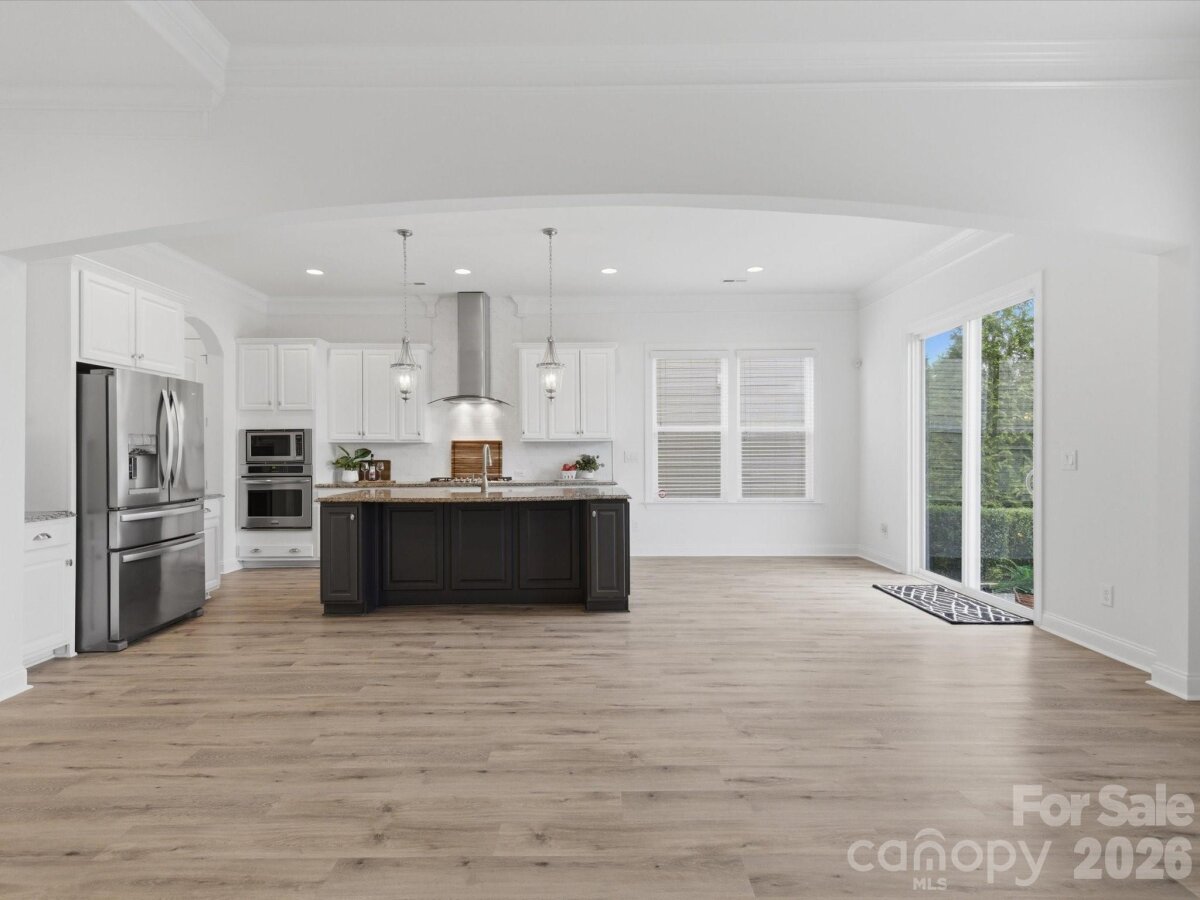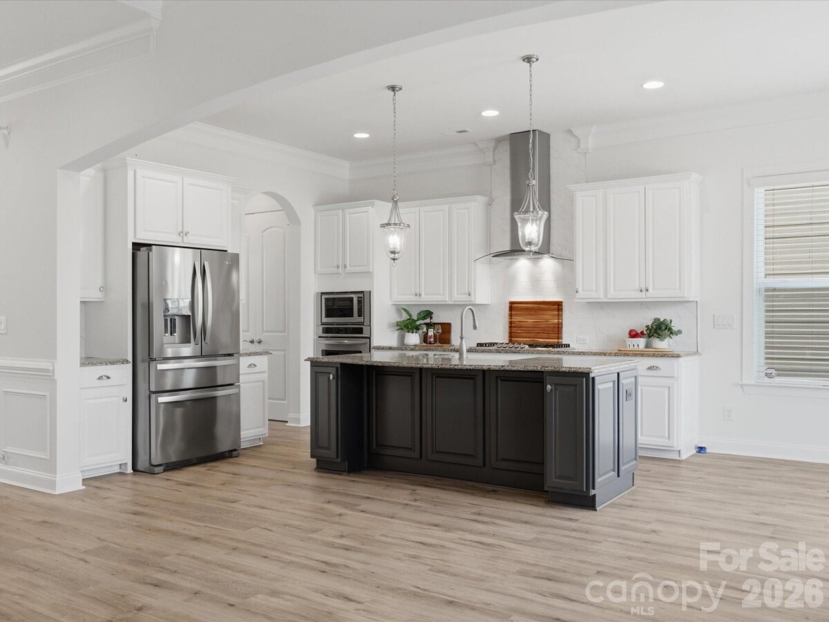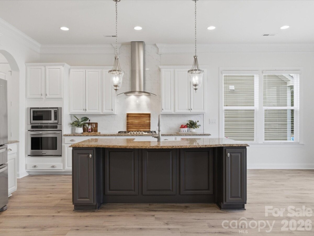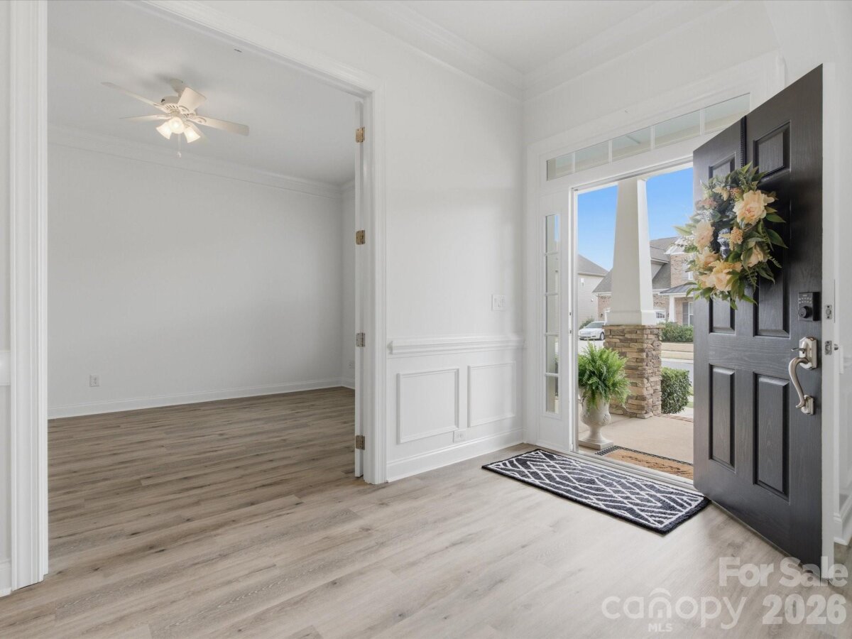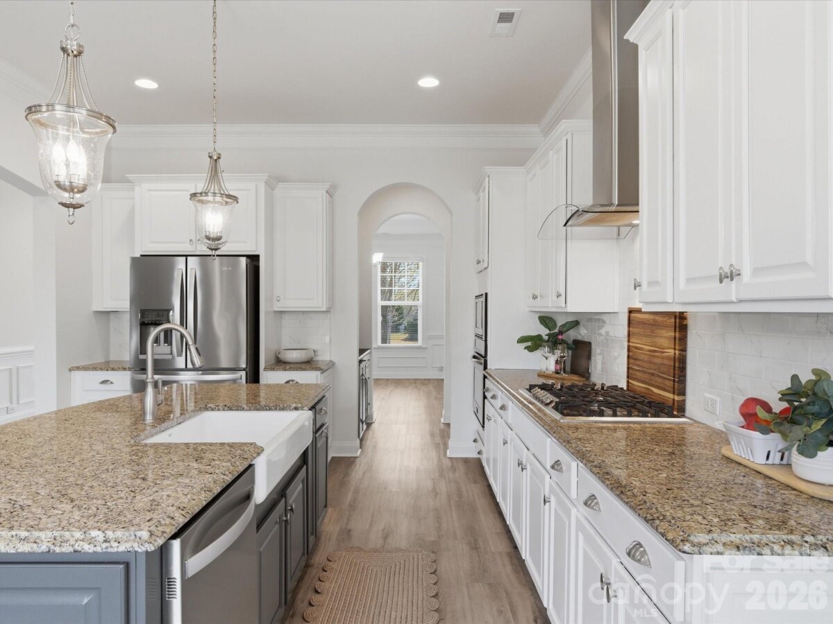 Welcome to this beautifully appointed 5-bedroom, 4.5-bath home in the highly sought-after MillBridge community. Featuring 10-foot ceilings throughout the main level, this home offers an open, airy feel with thoughtful spaces for everyday living and gathering. A private home office with French doors provides a quiet place for work or study, while the elegant dining room with chair rail molding is perfect for meals and special occasions. The chef’s kitchen serves as the heart of the home, featuring a white farmhouse sink, spacious island, breakfast area, and a butler’s pantry with a wine fridge. Freshly painted kitchen cabinets and island add a bright, updated feel. The open-concept living area, highlighted by a 12-foot coffered ceiling, creates a welcoming space for family time and entertaining. Upstairs, the expansive primary suite offers a relaxing retreat with dual vanities, a soaking tub, and a custom closet. A large bonus room provides the perfect space for movie nights, a playroom, or a teen hangout The main level includes a guest suite, ideal for multigenerational living, visiting guests, or use as a second office or playroom. A functional laundry room with custom cabinetry and a folding table makes daily routines easier. The first floor features LVP flooring, while all-new carpeting enhances the second level. Fresh interior and exterior paint, along with a new hot water heater, make this home truly move-in ready. MillBridge offers an unmatched lifestyle with scenic walking trails, multiple pools, pickleball courts, a fitness center, coffee shop, and a vibrant calendar of community events. Just minutes from historic downtown Waxhaw, enjoy charming shops, dining, and local happenings. Thoughtfully updated and ready for its next chapter, this home is the perfect place to grow, gather, and make lasting memories.