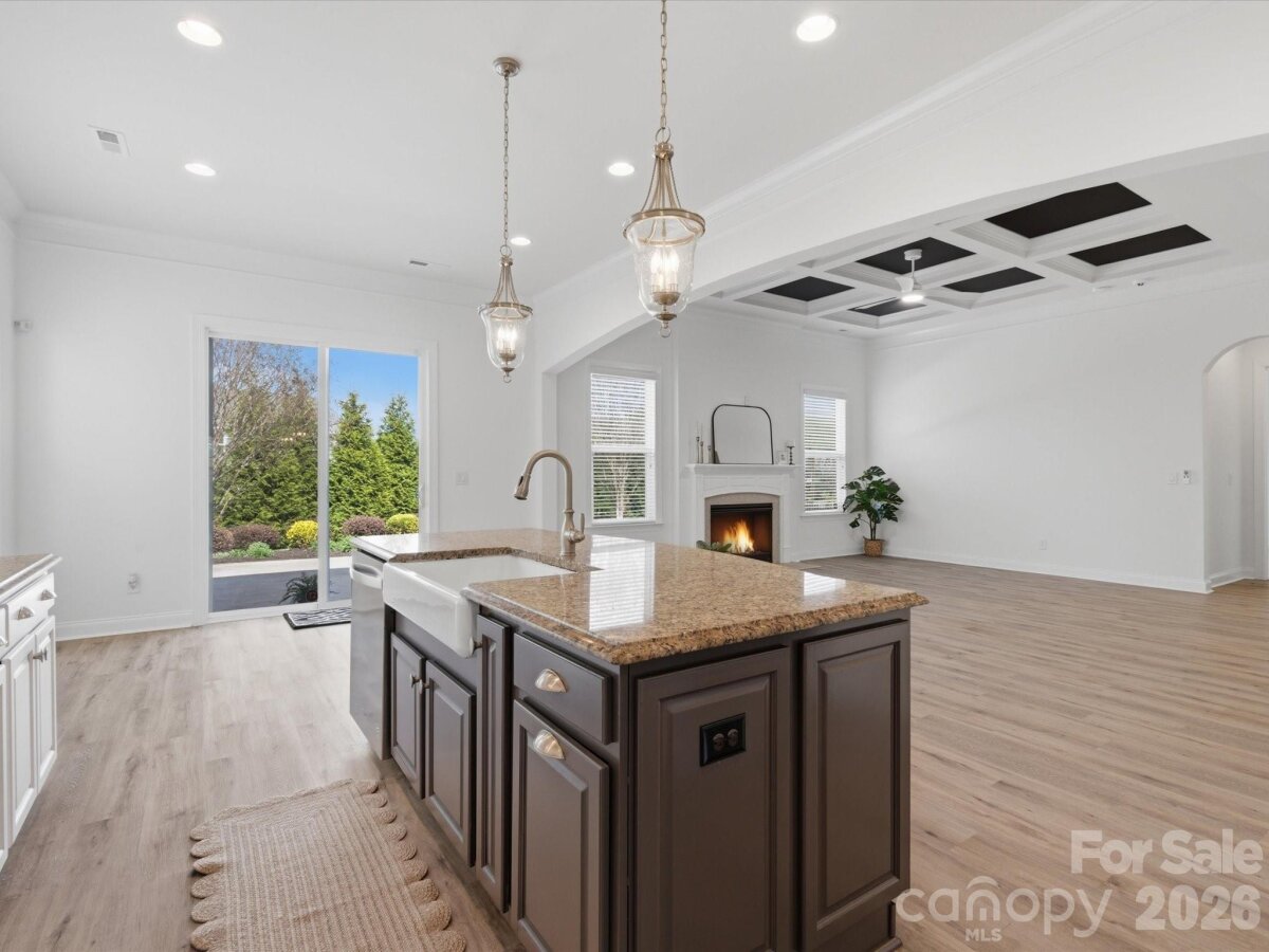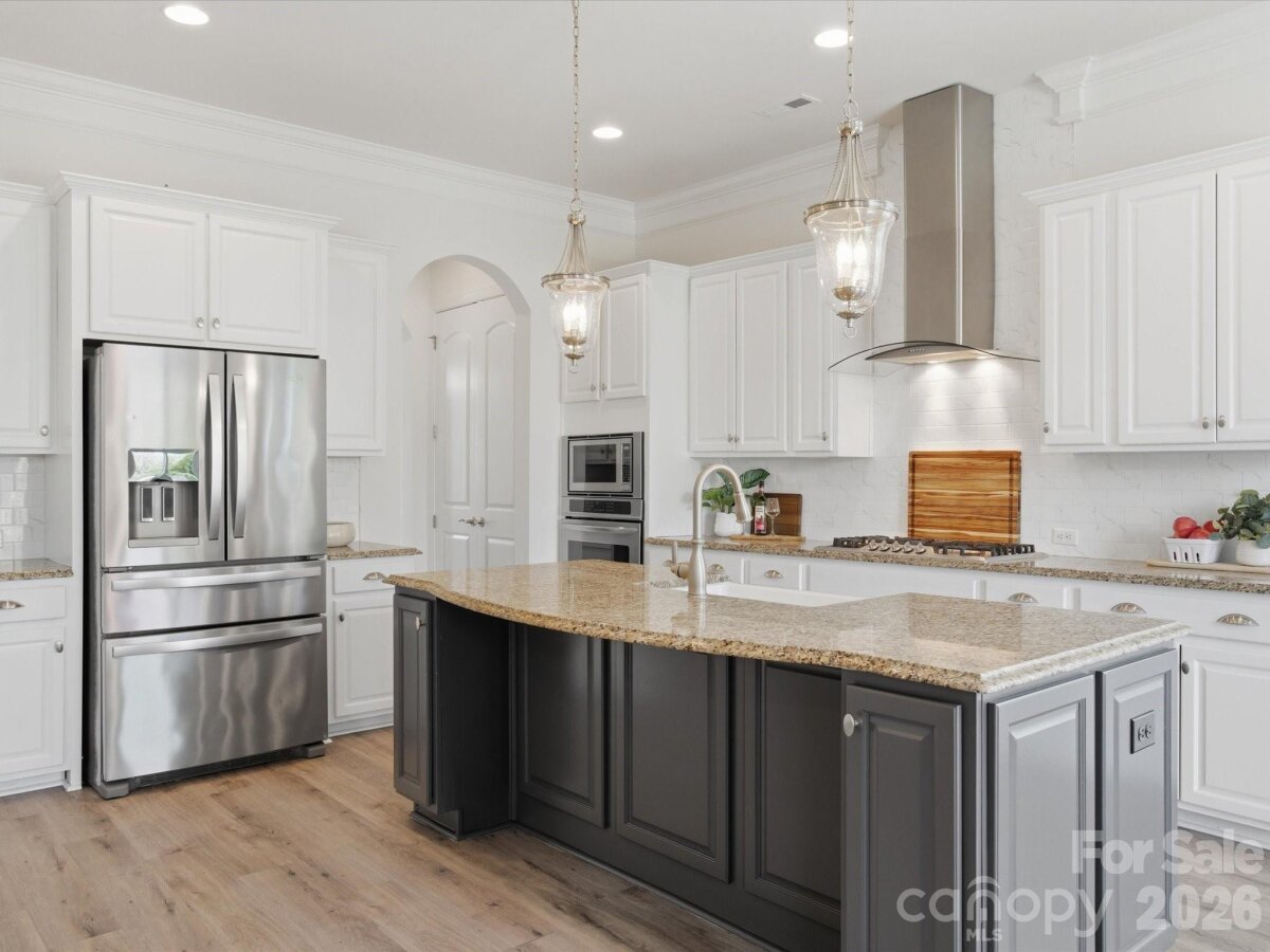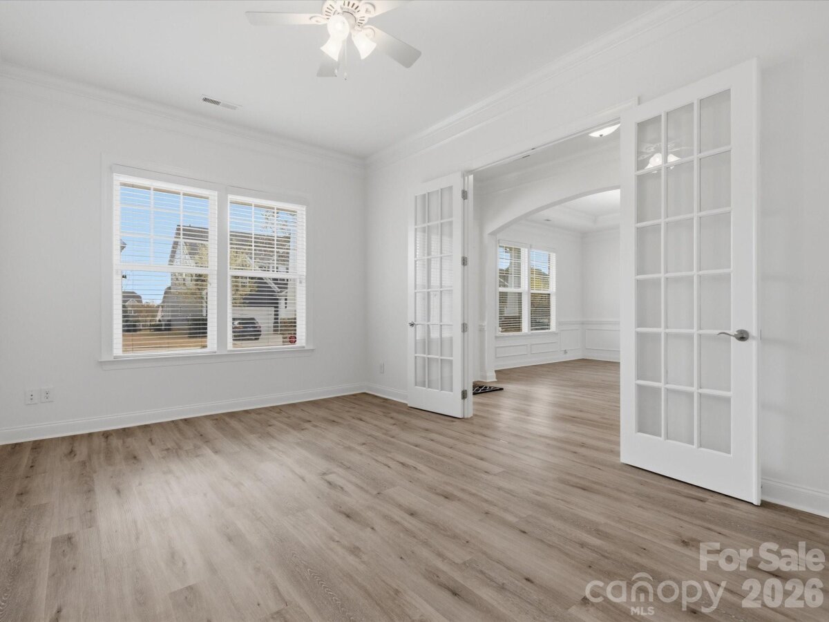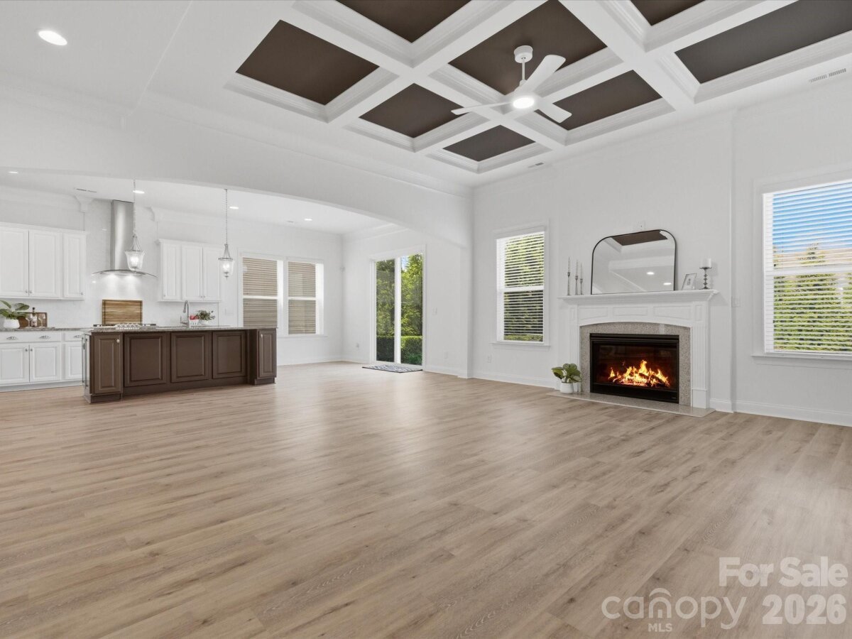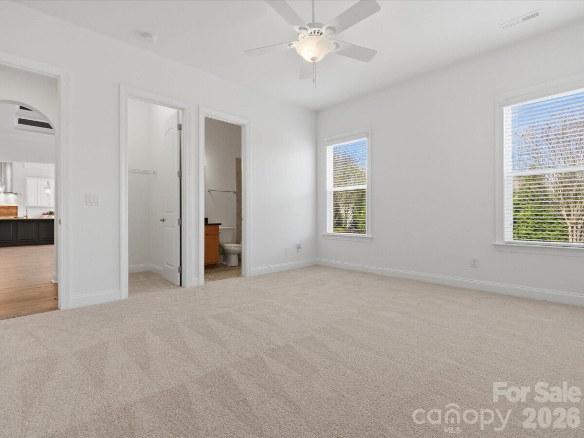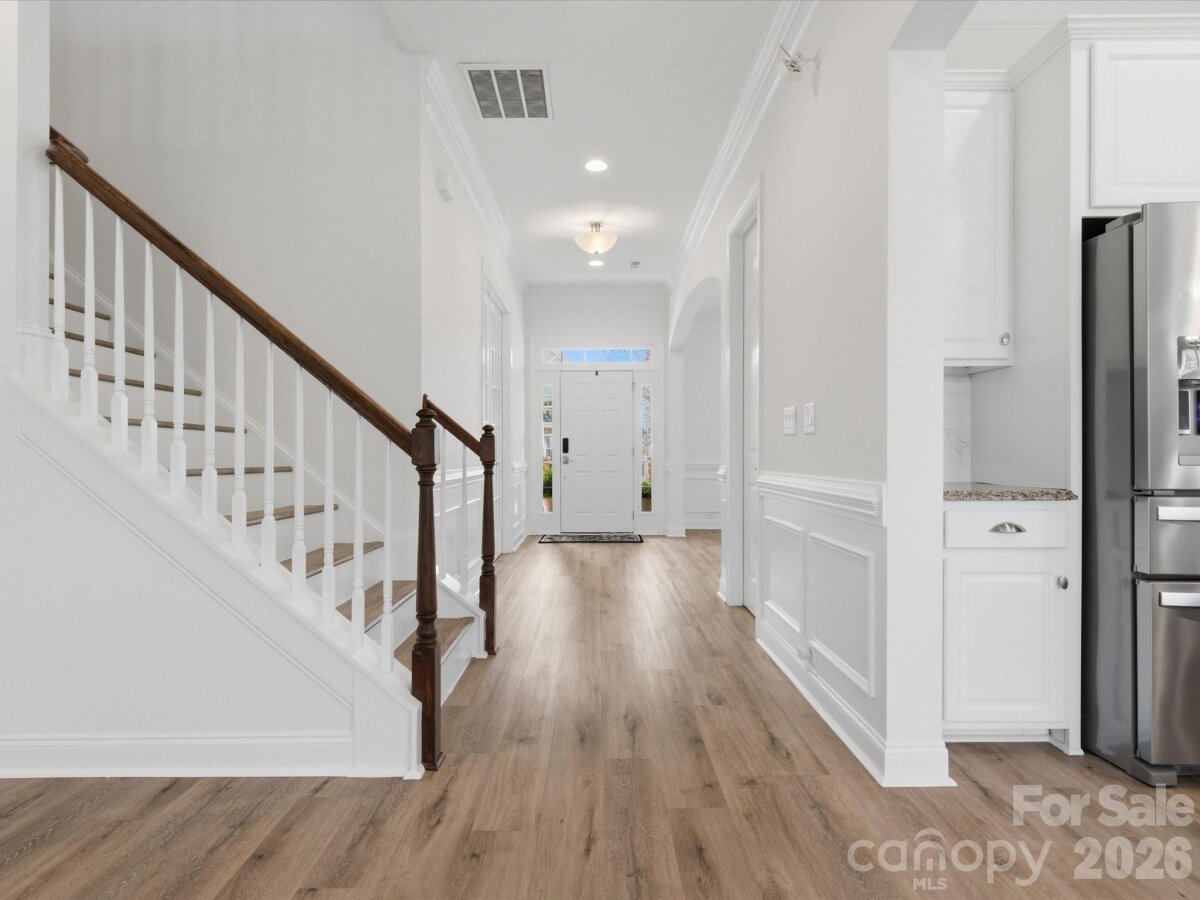 Welcome to this beautifully appointed 5-bedroom, 4.5-bath home in the highly sought-after MillBridge community. Featuring 10-foot ceilings throughout the main level, this home offers an open, airy feel with thoughtful spaces for everyday living and gathering. A private home office with French doors provides a quiet place for work or study, while the elegant dining room with chair rail molding is perfect for meals and special occasions. The chef’s kitchen serves as the heart of the home, featuring a white farmhouse sink, spacious island, breakfast area, and a butler’s pantry with a wine fridge. Freshly painted kitchen cabinets and island add a bright, updated feel. The open-concept living area, highlighted by a 12-foot coffered ceiling, creates a welcoming space for family time and entertaining. Upstairs, the expansive primary suite offers a relaxing retreat with dual vanities, a soaking tub, and a custom closet. A large bonus room provides the perfect space for movie nights, a playroom, or a teen hangout The main level includes a guest suite, ideal for multigenerational living, visiting guests, or use as a second office or playroom. A functional laundry room with custom cabinetry and a folding table makes daily routines easier. The first floor features LVP flooring, while all-new carpeting enhances the second level. Fresh interior and exterior paint, along with a new hot water heater, make this home truly move-in ready. MillBridge offers an unmatched lifestyle with scenic walking trails, multiple pools, pickleball courts, a fitness center, coffee shop, and a vibrant calendar of community events. Just minutes from historic downtown Waxhaw, enjoy charming shops, dining, and local happenings. Thoughtfully updated and ready for its next chapter, this home is the perfect place to grow, gather, and make lasting memories.