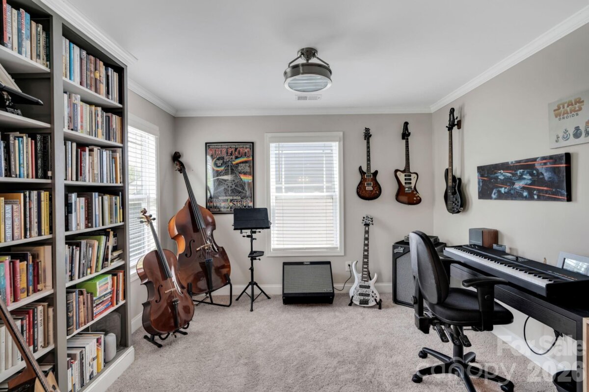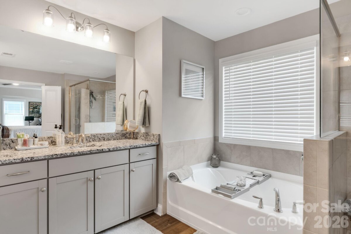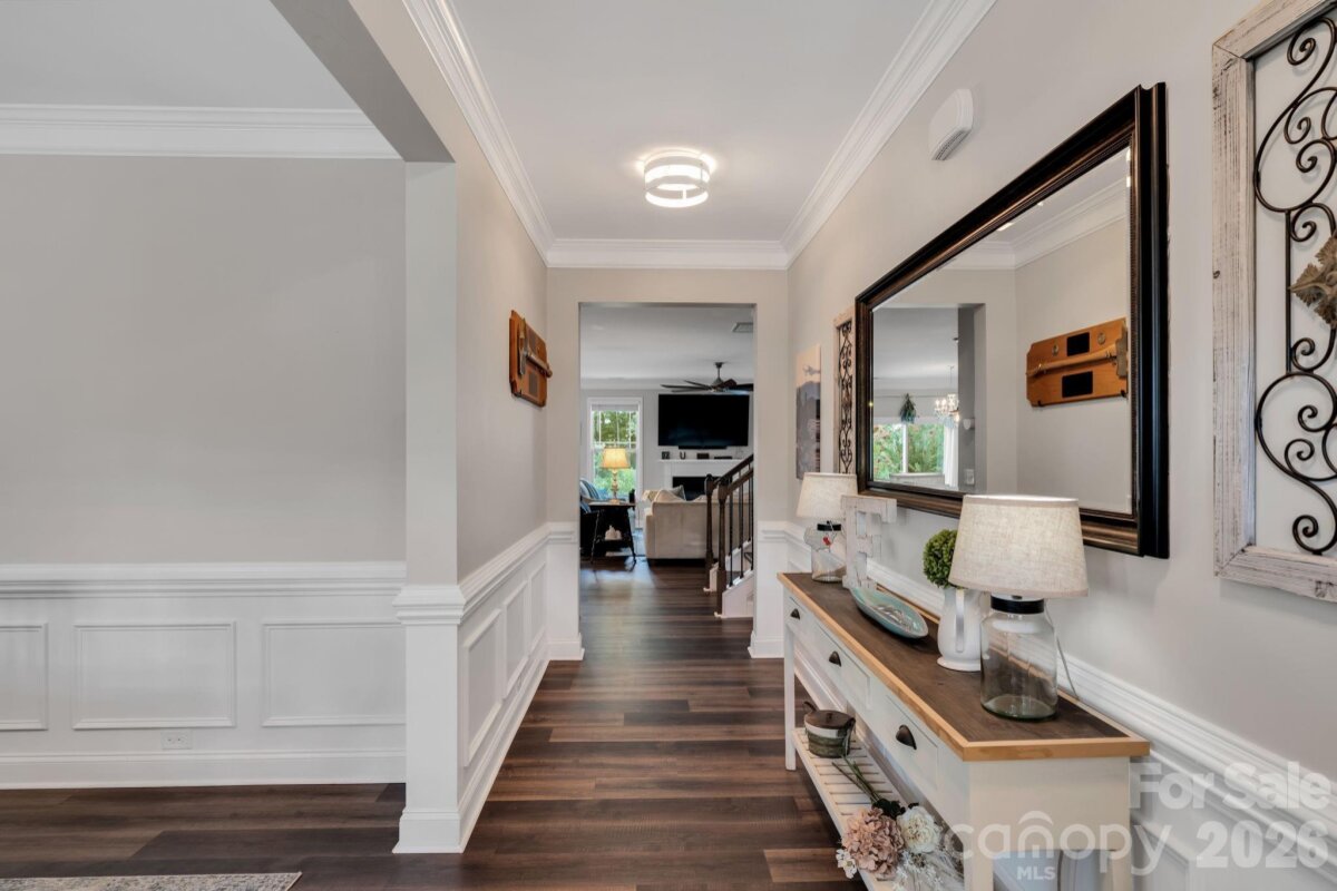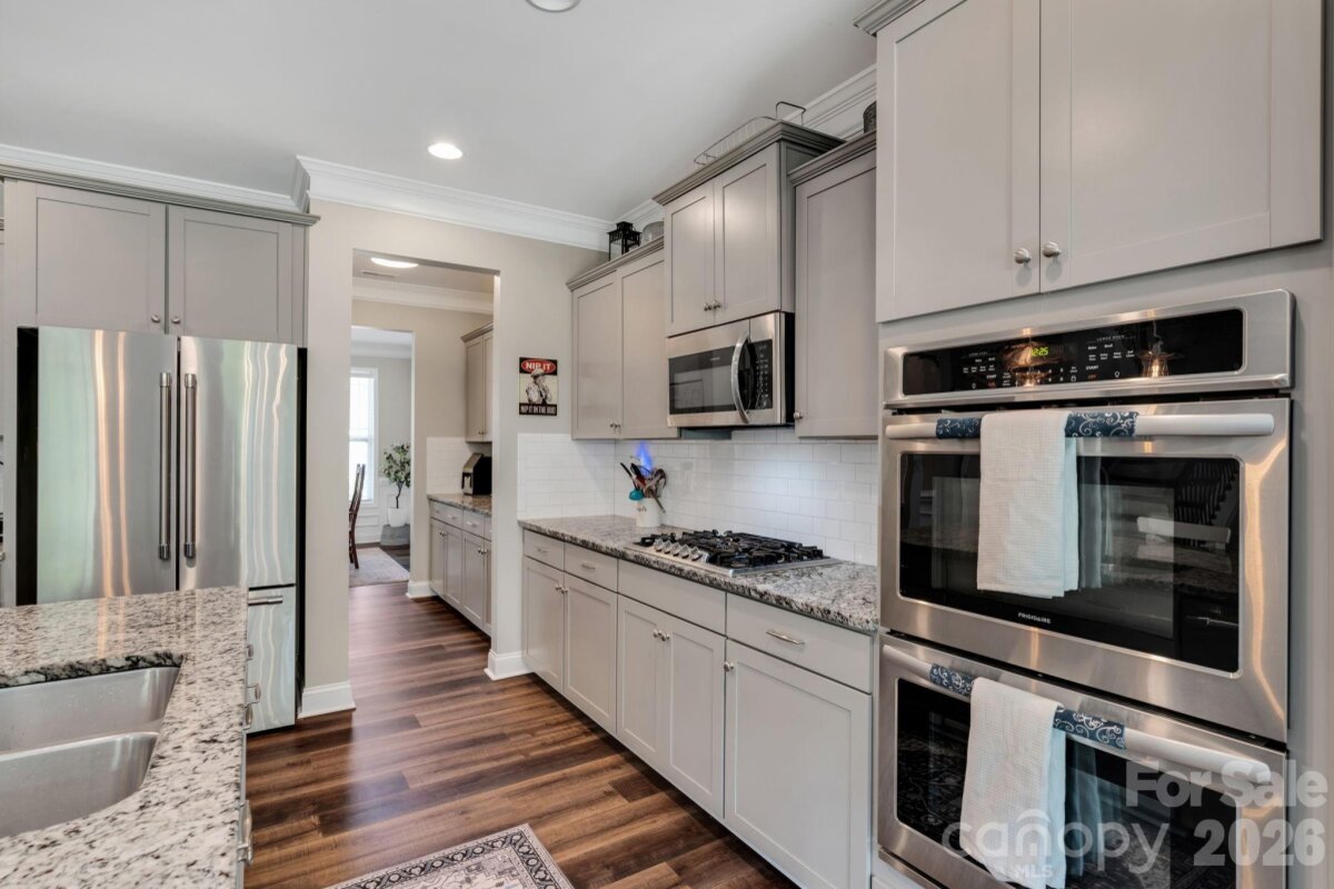 Beautifully maintained one-owner home located on a premium wooded lot in a sought-after resort-style community. Built in 2019, this 4BR/3BA home plus bonus room offers 3,200 sq ft of upgraded living space. The chef’s kitchen features a wall-mounted double oven, granite countertops, subway tile backsplash, soft-close cabinetry, recessed lighting, a large island, butler’s pantry, and custom walk-in pantry. The open layout showcases new LVP flooring, a gas fireplace, and plenty of windows providing amazing natural light. Upstairs, the spacious primary suite includes tray ceilings and a sitting area with a custom built-in bookshelf. The luxurious en-suite bath offers a tile shower, soaking garden tub, dual vanities, and a walk-in closet. A large loft with a storage closet could easily be converted into a fifth bedroom. Additional highlights include crown molding, upgraded window paneling, tile in all bathrooms, a covered porch, extended patio, French drain, overhead garage storage, and annual HVAC service. Community amenities include pools, recreation areas, and even a coffee shop — all just minutes from the charm and convenience of Waxhaw