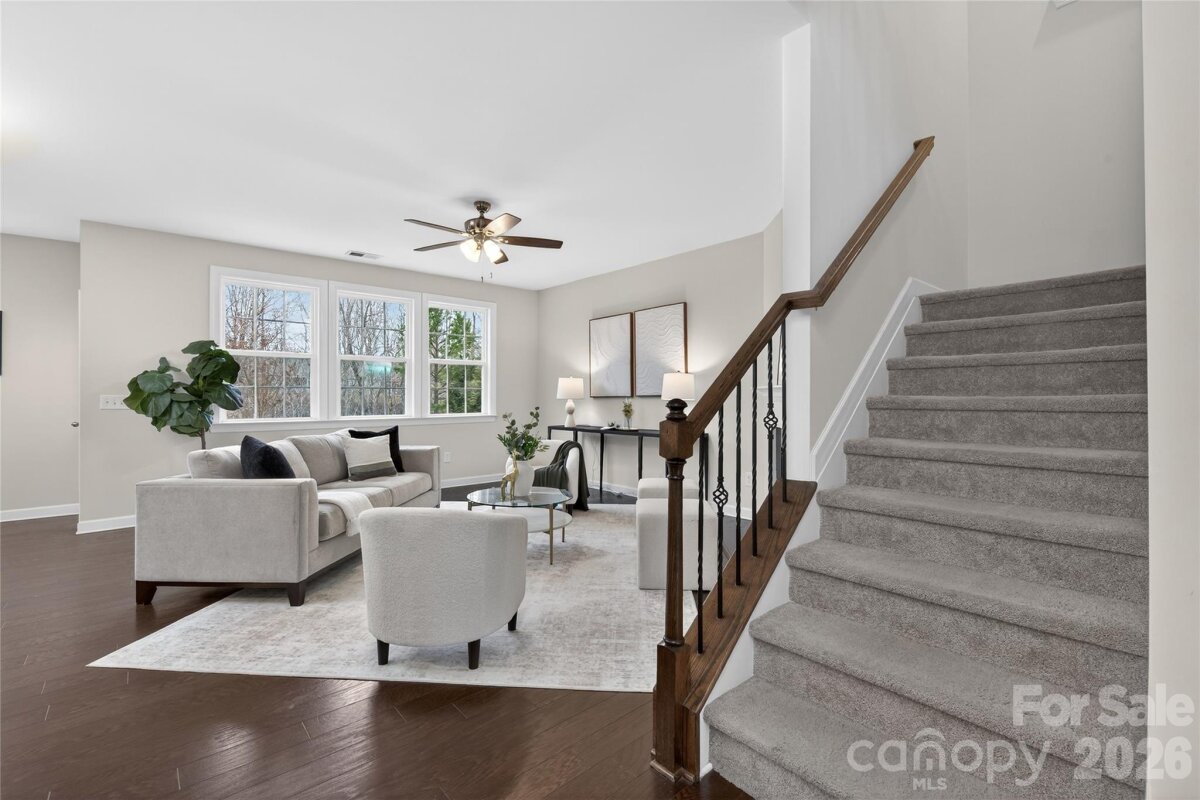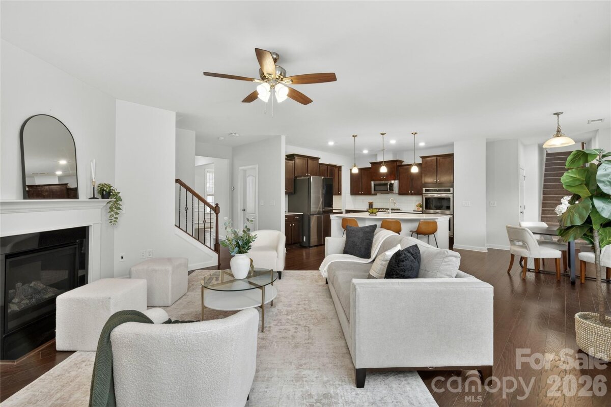 Waxhaw living on a quiet street in the highly coveted Millbridge community. This exceptional 5 bedroom, 2.5 bath residence seamlessly blends timeless elegance with modern comfort, offering a home that is as beautiful as it is functional. From the moment you enter, rich hardwood floors and abundant natural light create a warm yet sophisticated ambiance. A formal dining room & office/den flank the foyer. The thoughtfully designed open-concept floor plan flows effortlessly from the chef’s kitchen into the expansive great room, and sunlit breakfast area, — creating an ideal setting for both intimate gatherings and elevated entertaining. Upstairs, the oversized primary suite serves as a true sanctuary, complete with an elegant trey ceiling, generous closet, and relaxing bathroom. Three additional bedrooms, full bath, and a conveniently located laundry room provide both comfort and functionality for everyday living. Privately positioned toward the rear of the home, an upper-level flex space offers endless possibilities — a media lounge, office, playroom, or even a private fifth bedroom retreat. Step outside to a serene patio and yard backing to mature woods — offering enhanced privacy and a peaceful natural backdrop — perfect for morning coffee, evening wine, or effortless outdoor entertaining. This is more than a home — it’s a lifestyle.