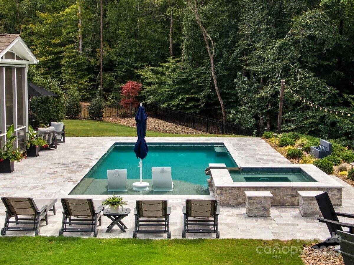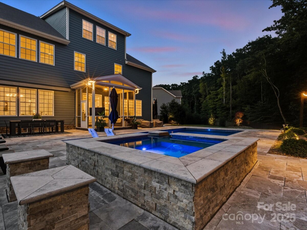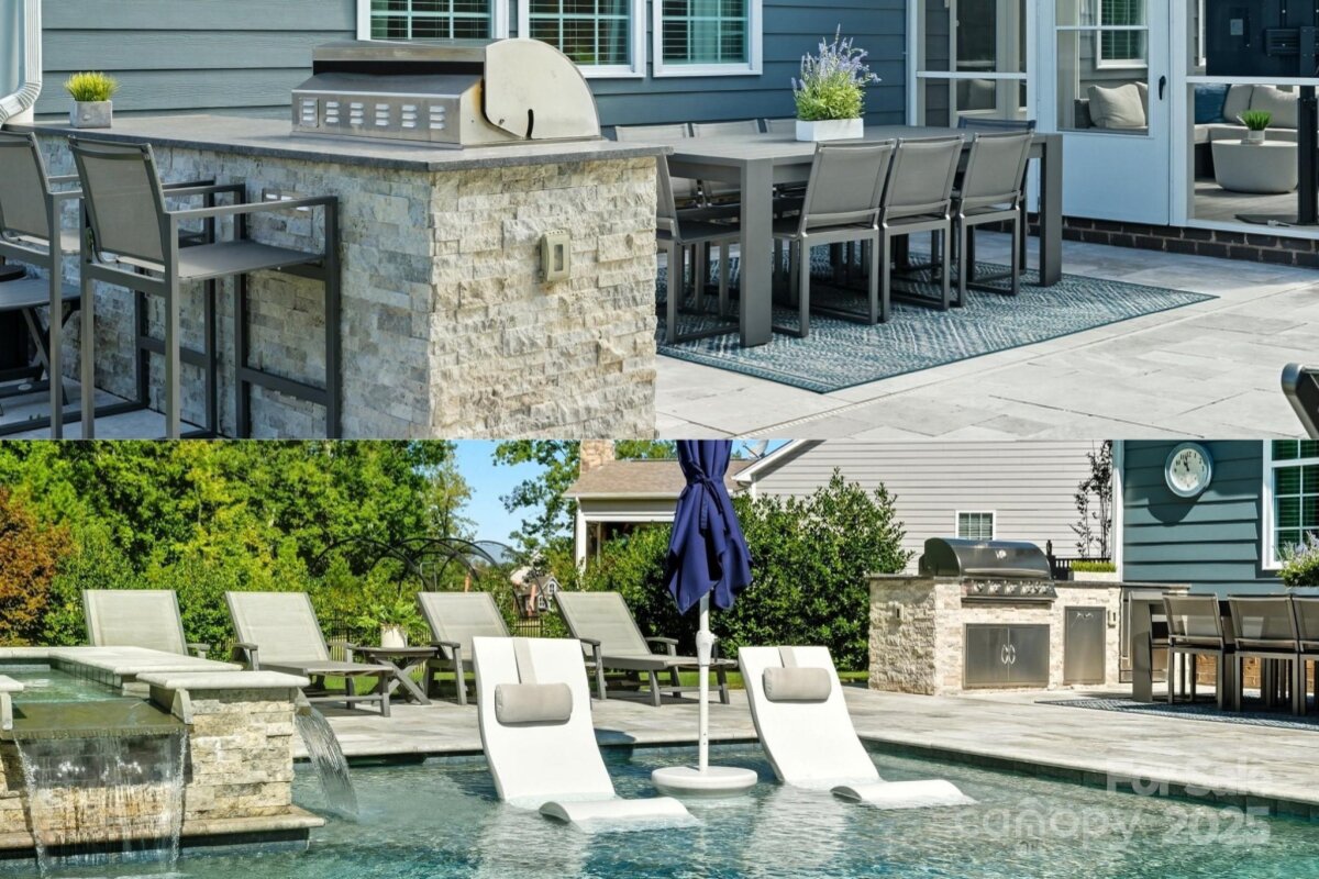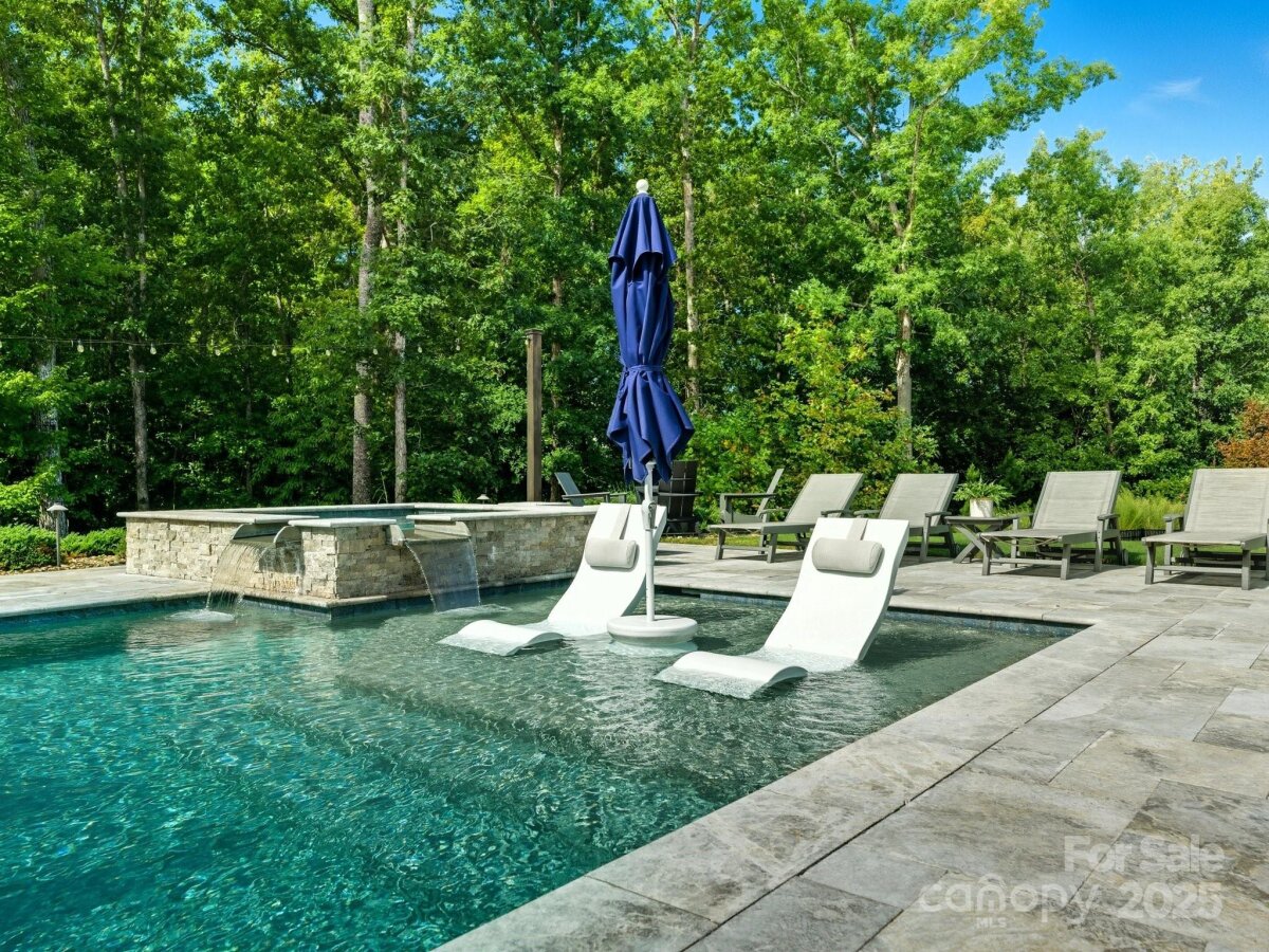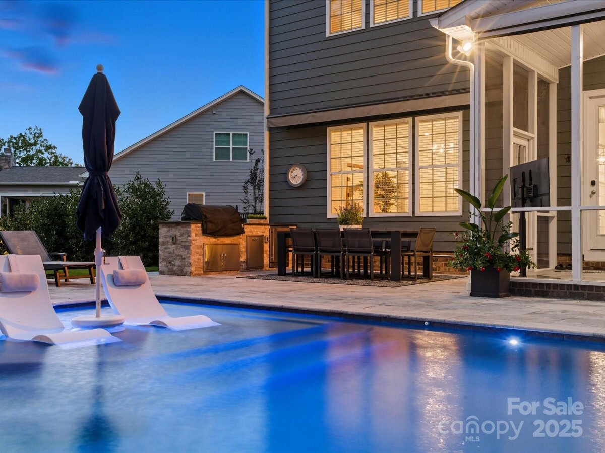 This 6-bedroom, 4.5-bath Millbridge estate is a showcase of luxury, craftsmanship, and uncompromising quality where every feature has been upgraded with precision and purpose. The exterior is designed for both beauty and performance, with Trimlight all-season architectural lighting, Leaf Filter gutter protection, and Carolina Landscape Lighting illuminating the façade, backyard, and wooded perimeter. Downspouts are built into the ground and drained into the woods, while a Pickett aluminum fence with self-closing gates secures the landscaped yard filled with privacy trees. Custom enclosures discreetly house garbage and pool equipment, and the extended driveway with walkway enhances both function and curb appeal. Inside, the upgrades are just as exacting. A SpringWell whole-house water filtration and UV system ensures pristine water, while Sonos wired sound fills the main level and media room with immersive audio. Smart home technology integrates locks, garage, and thermostat, complemented by CPI Security compatibility, flush-mount lighting, and high-hat fixtures. The garage is a high-performance space of its own with SwissTrax flooring, ceiling storage racks, and an EV charging outlet. Custom craftsmanship touches every corner of the home with fully built-out closets in four of the bedrooms, a primary suite closet offering the scale and finish of a designer atelier, an expansive custom pantry, shiplap kitchen island, custom entertainment units in the loft and media room, and bespoke cabinetry in the mudroom, butler’s pantry, and laundry. The backyard is a private resort engineered by CCR Backyard Design and Antony & Sylvan Pools, centered on a 15x32 mineral gunite heated pool finished in French Gray mini pebbles and GST Blue tile. Features include a built-in sun ledge for in-water loungers, a swim-out ledge, freeze protection, a gas-heated oversized spa, programmable LED lighting, and full automation via remote or phone app. A custom overflow connects the pool to the gutter system for efficiency, while the deck is finished in sandblasted and leathered marble stone. Outdoor living is elevated by a full custom kitchen clad in chocolate gray stone veneer with steel gray leathered granite counters and equipped with Blaze premium-grade appliances. Automated bronze awnings and sun screens provide comfort and shade at the touch of a button, while custom stone seating areas, landscaped lighting, Polywood chaise lounges and Adirondack chairs complete the setting.. Every brand name and finish—SpringWell, Sonos, Blaze, SwissTrax, Polywood, Innovative Awnings—has been chosen to represent the highest standard of reliability and performance. For those who expect not just elegance but substance, precision, and permanence, this home stands alone as the finest example of Millbridge living.