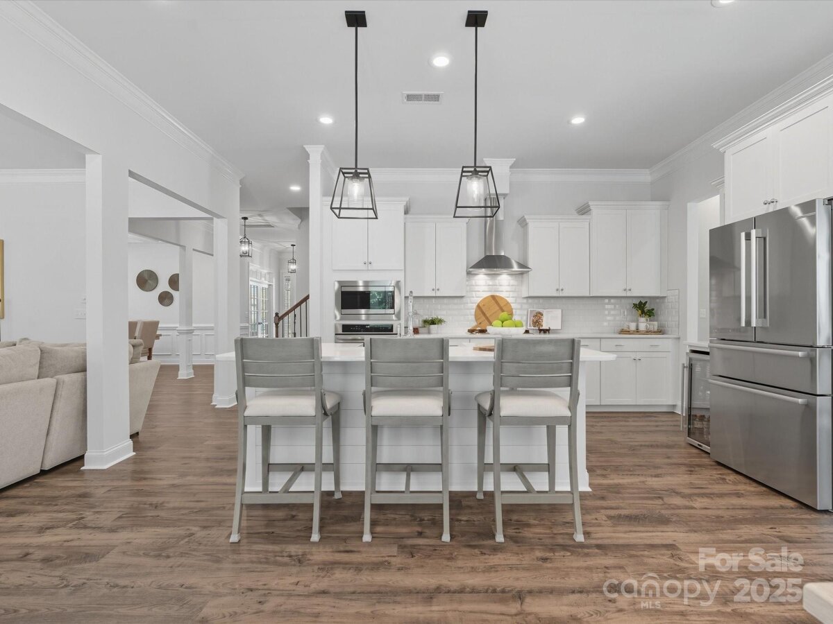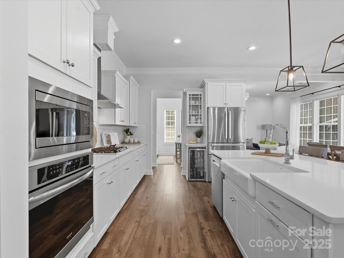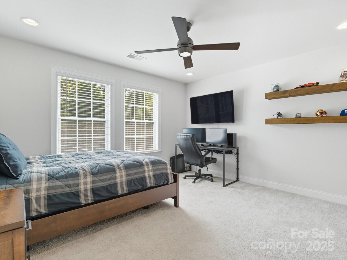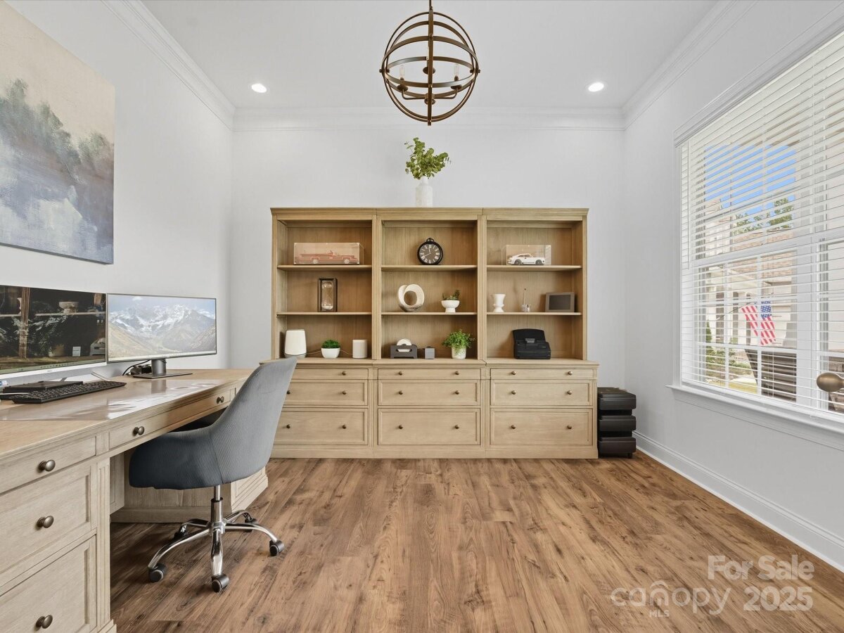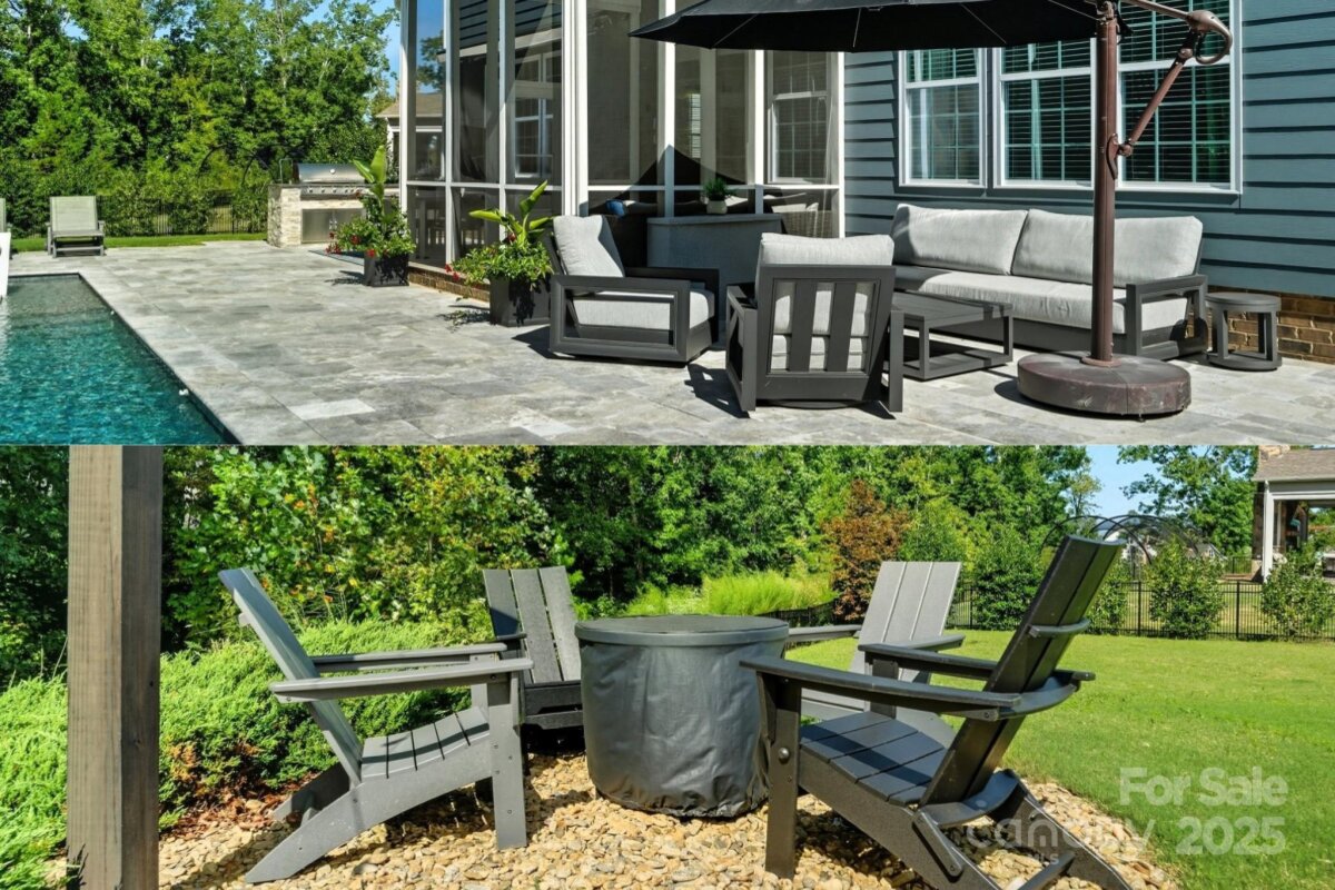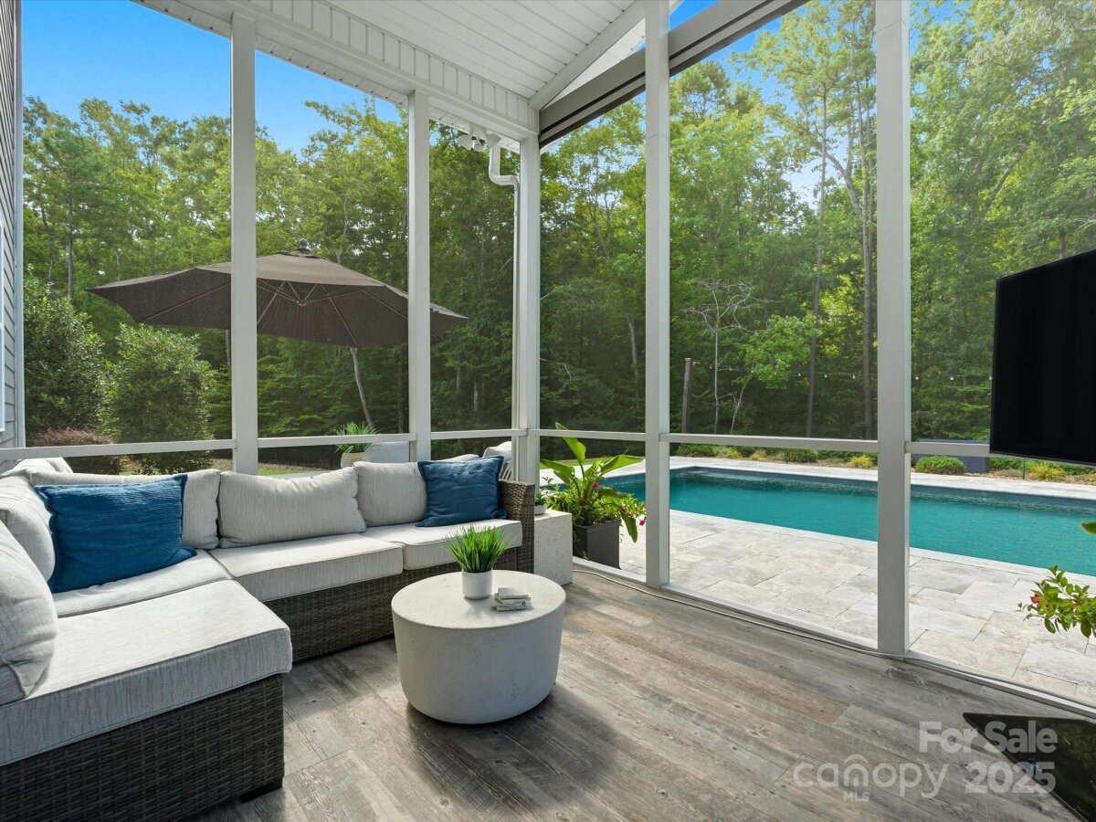 This 6-bedroom, 4.5-bath Millbridge estate is a showcase of luxury, craftsmanship, and uncompromising quality where every feature has been upgraded with precision and purpose. The exterior is designed for both beauty and performance, with Trimlight all-season architectural lighting, Leaf Filter gutter protection, and Carolina Landscape Lighting illuminating the façade, backyard, and wooded perimeter. Downspouts are built into the ground and drained into the woods, while a Pickett aluminum fence with self-closing gates secures the landscaped yard filled with privacy trees. Custom enclosures discreetly house garbage and pool equipment, and the extended driveway with walkway enhances both function and curb appeal. Inside, the upgrades are just as exacting. A SpringWell whole-house water filtration and UV system ensures pristine water, while Sonos wired sound fills the main level and media room with immersive audio. Smart home technology integrates locks, garage, and thermostat, complemented by CPI Security compatibility, flush-mount lighting, and high-hat fixtures. The garage is a high-performance space of its own with SwissTrax flooring, ceiling storage racks, and an EV charging outlet. Custom craftsmanship touches every corner of the home with fully built-out closets in four of the bedrooms, a primary suite closet offering the scale and finish of a designer atelier, an expansive custom pantry, shiplap kitchen island, custom entertainment units in the loft and media room, and bespoke cabinetry in the mudroom, butler’s pantry, and laundry. The backyard is a private resort engineered by CCR Backyard Design and Antony & Sylvan Pools, centered on a 15x32 mineral gunite heated pool finished in French Gray mini pebbles and GST Blue tile. Features include a built-in sun ledge for in-water loungers, a swim-out ledge, freeze protection, a gas-heated oversized spa, programmable LED lighting, and full automation via remote or phone app. A custom overflow connects the pool to the gutter system for efficiency, while the deck is finished in sandblasted and leathered marble stone. Outdoor living is elevated by a full custom kitchen clad in chocolate gray stone veneer with steel gray leathered granite counters and equipped with Blaze premium-grade appliances. Automated bronze awnings and sun screens provide comfort and shade at the touch of a button, while custom stone seating areas, landscaped lighting, Polywood chaise lounges and Adirondack chairs complete the setting.. Every brand name and finish—SpringWell, Sonos, Blaze, SwissTrax, Polywood, Innovative Awnings—has been chosen to represent the highest standard of reliability and performance. For those who expect not just elegance but substance, precision, and permanence, this home stands alone as the finest example of Millbridge living.