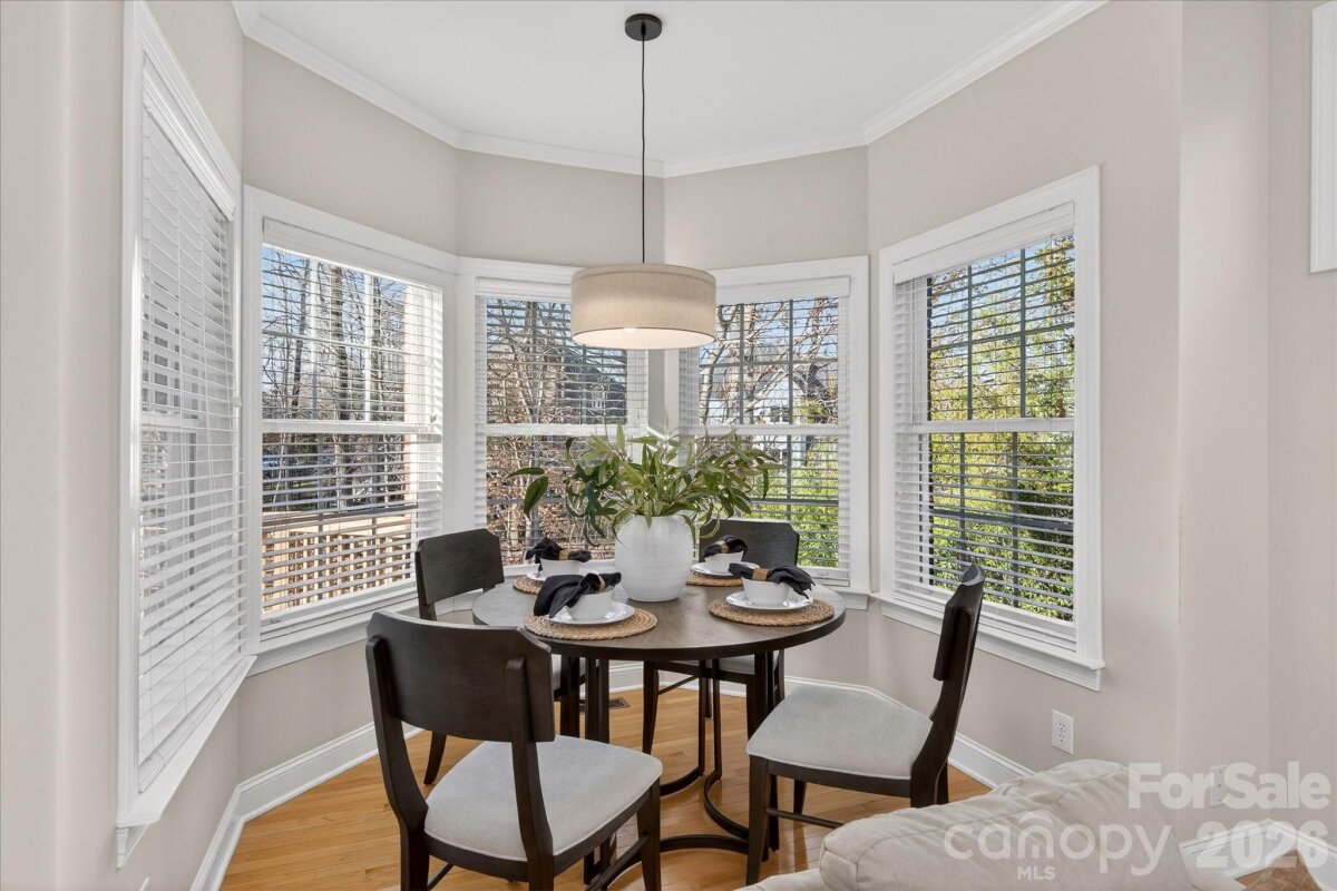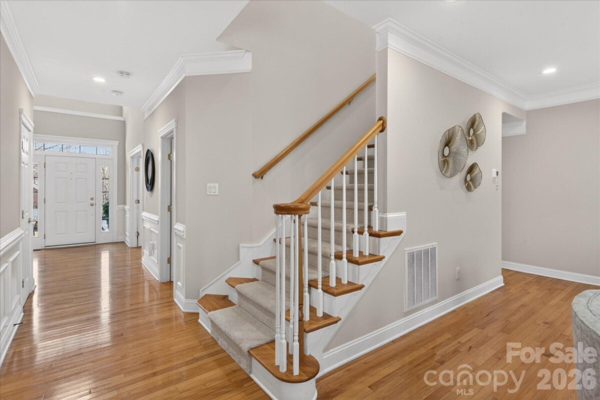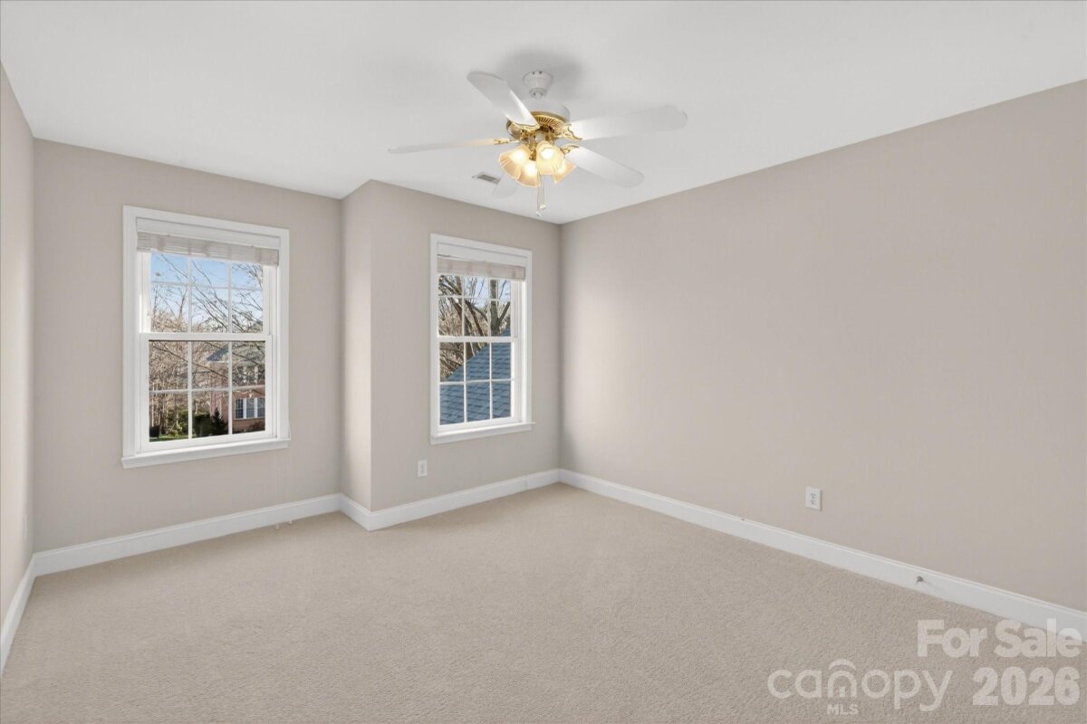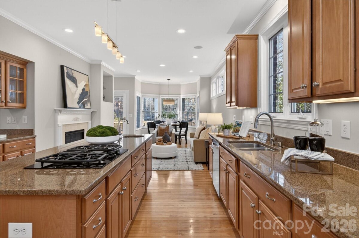 All brick home situated on an almost half-acre lot with a wooded backyard. The home features a functional layout with a dedicated office, a large family room, and a kitchen designed for entertaining large groups. A double-sided fireplace connects the family room and the keeping area off the kitchen. The primary suite is located on the main level and includes an oversized bedroom and a walk-in closet with built-in shelving. Upstairs includes two bedrooms connected by a Jack-and-Jill bathroom, an additional bedroom with a hall bath, and a large bonus room offering flexible living space. Outdoor living includes a large rear deck overlooking the wooded backyard. Recent updates include new carpet, lighting, and interior paint throughout the home. This home is located directly across the street from the community pond with walking trails. Quellin offers community amenities such as an outdoor pool, playground, and pickleball courts. MOVE-IN READY!