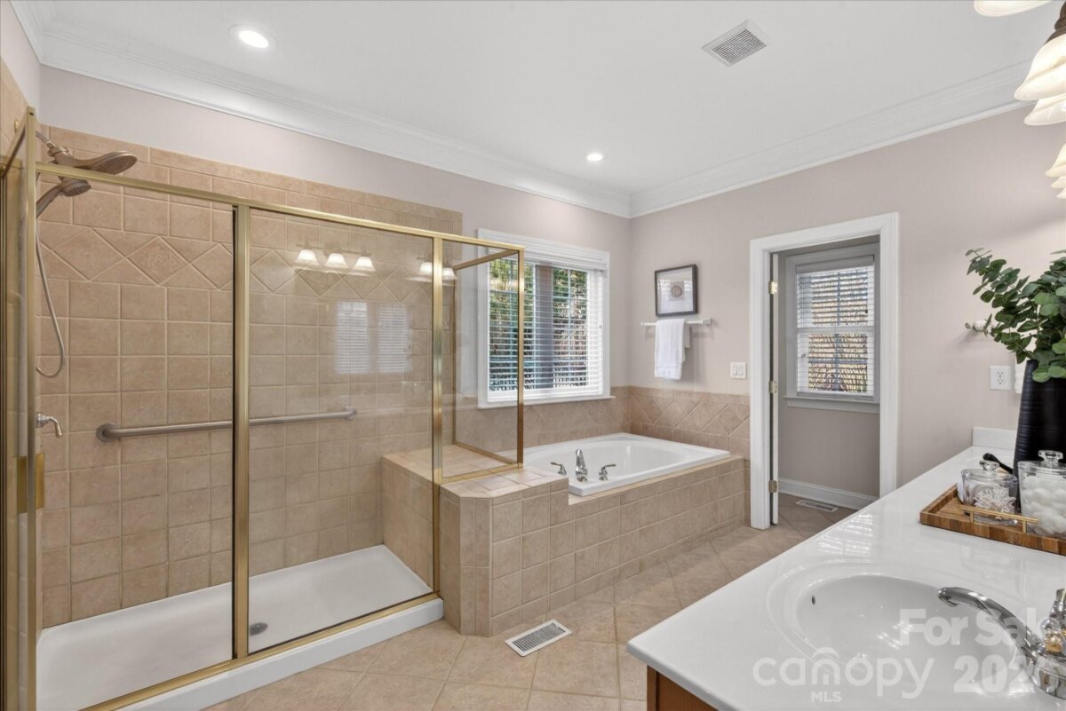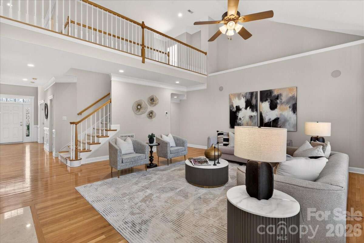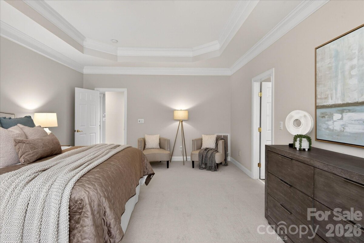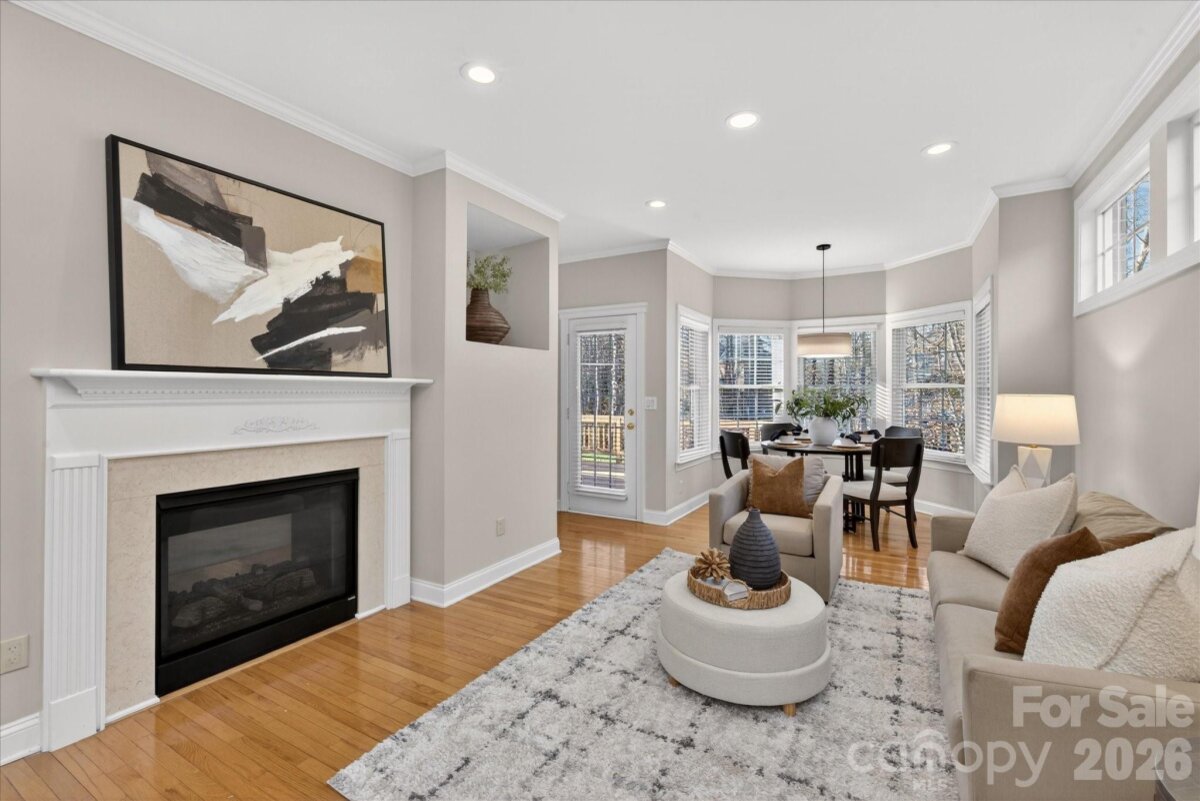 All brick home situated on an almost half-acre lot with a wooded backyard. The home features a functional layout with a dedicated office, a large family room, and a kitchen designed for entertaining large groups. A double-sided fireplace connects the family room and the keeping area off the kitchen. The primary suite is located on the main level and includes an oversized bedroom and a walk-in closet with built-in shelving. Upstairs includes two bedrooms connected by a Jack-and-Jill bathroom, an additional bedroom with a hall bath, and a large bonus room offering flexible living space. Outdoor living includes a large rear deck overlooking the wooded backyard. Recent updates include new carpet, lighting, and interior paint throughout the home. This home is located directly across the street from the community pond with walking trails. Quellin offers community amenities such as an outdoor pool, playground, and pickleball courts. MOVE-IN READY!