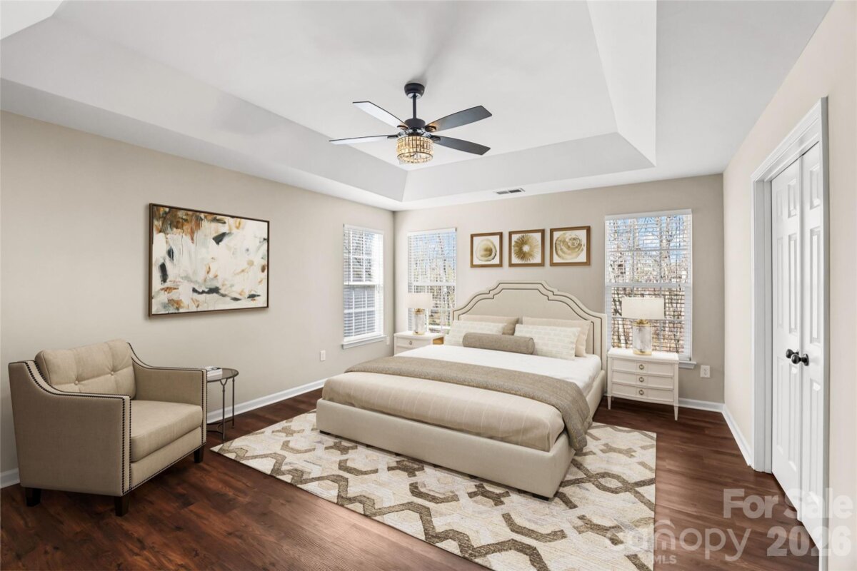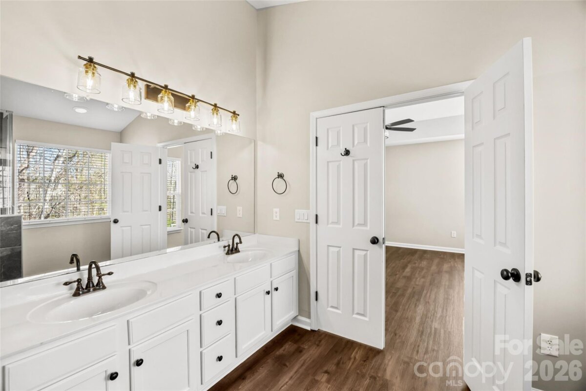 This beautifully maintained traditional home is in a tranquil cul-de-sac of Somerset. Lovely formal areas feature new LVP flooring and floor-to-ceiling windows in the family room with a gas fireplace. The kitchen has all new stainless steel appliances, kitchen cabinets are freshly painted, and new granite countertops with custom tile backsplash. The kitchen island has also been enlarged. On the first level there is a guest bedroom with a full bathroom. Upstairs, the primary bedroom has new LVP flooring with a gorgeous renovated ensuite with dual vanities and walk-in shower. The upstairs also features two secondary bedrooms with a Jack and Jill bathroom, laundry room, and a loft with a view. The freshly painted deck overlooks mature landscaping with a putting green perfect for entertaining. The interior was fully painted in 2026. All new light fixtures are throughout the home. The security system is an IQ Pro with automation of the thermostats and locks, Vacuflo central vacuum system, the video system includes 3 cameras, recorder, and video doorbell, roof (2018), fenced-in backyard, HVAC (2017), hot water heater (2023), and sprinkler system with 5 zones. The home has Ripple fiber internet connection. The community offers pickleball courts, tennis courts, basketball court, playground, soccer field, pool, and walking trails! Easily accessible to Uptown Charlotte, Waverly, Stonecrest, Blakeney, I-485, highly rated Marvin school district, and more. Move-in ready!