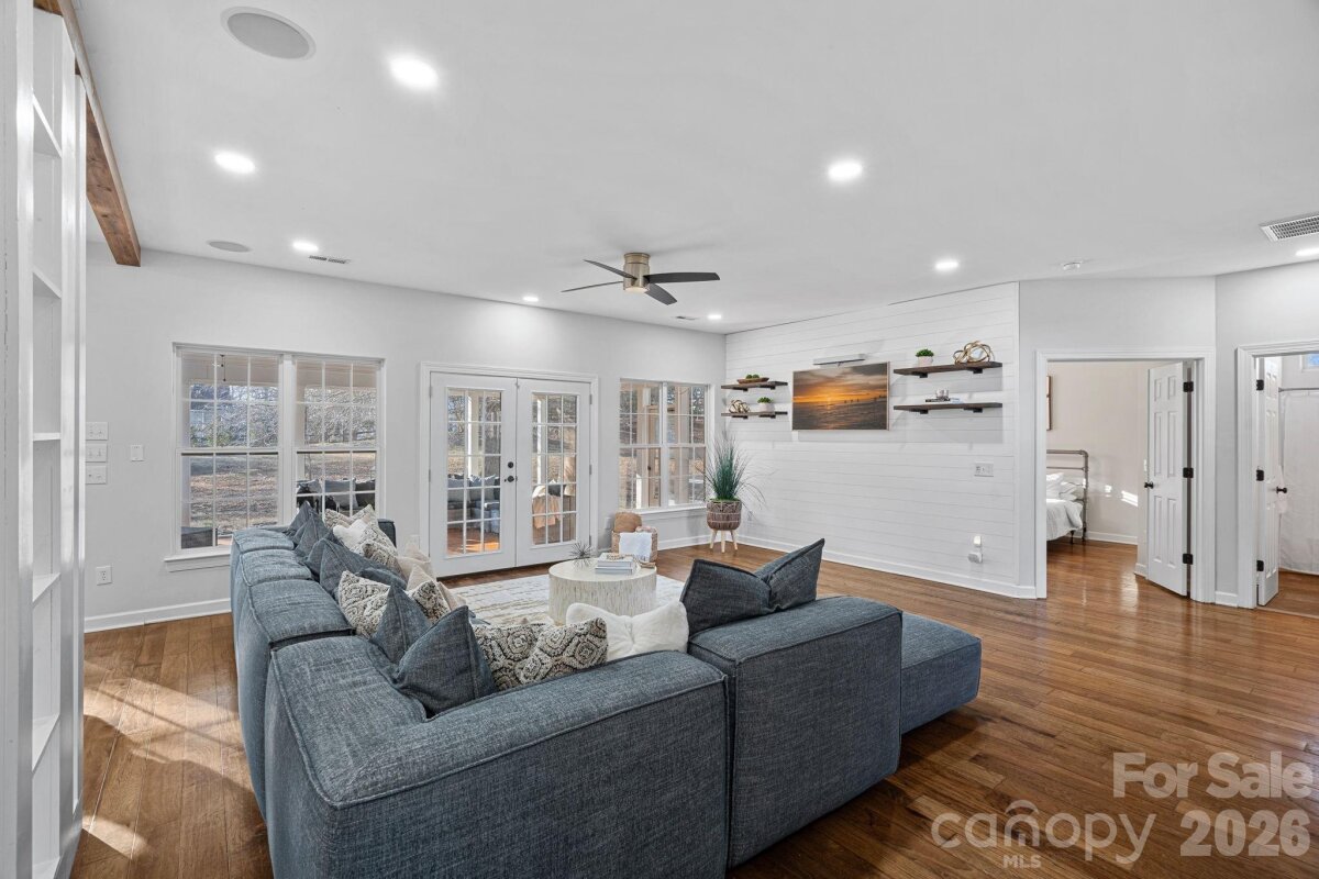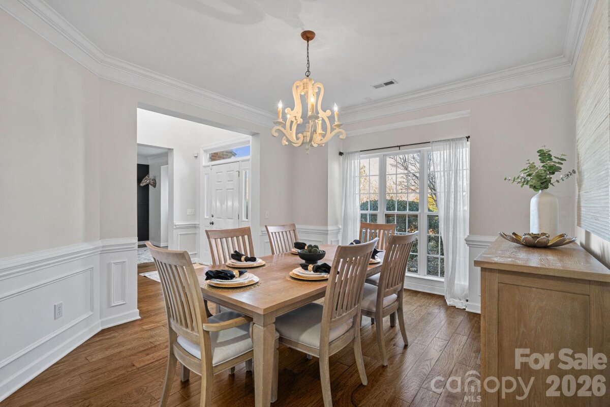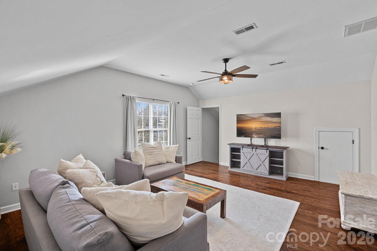 Move-in ready and extensively updated in Stonegate, this Waxhaw home pairs high-end finishes with a layout built for real life and entertaining. The reimagined kitchen is the centerpiece, featuring white quartz surfaces, an oversized island with seating, a farmhouse sink, floor-to-ceiling cabinetry with deep drawer storage, and a walk-in pantry with built-in shelving and dedicated ventilation. A statement gas range and vent hood anchor the space, supported by a newly added gas line, with additional built-in appliances completing the setup. Hardwood floors and new recessed lighting elevate the main level, which also includes a private office, formal dining, a newly created mudroom, one full bedroom and an updated full bath. The living room opens to a screened porch through French doors, extending the living space outdoors. A three-car garage with built-in storage racks rounds out the space. Upstairs offers full LVP flooring, four additional bedrooms plus a bonus room, an updated Jack-and-Jill bath, a custom closet system, and two staircases for easy flow.