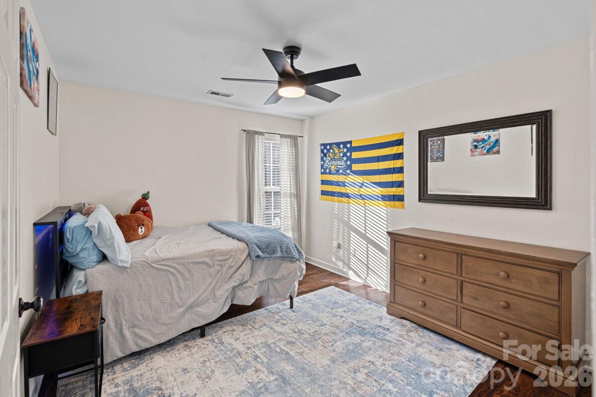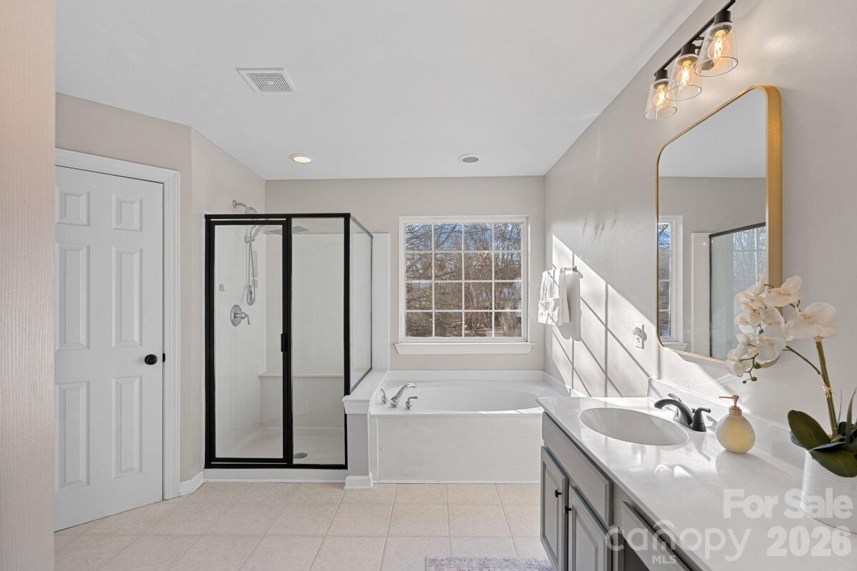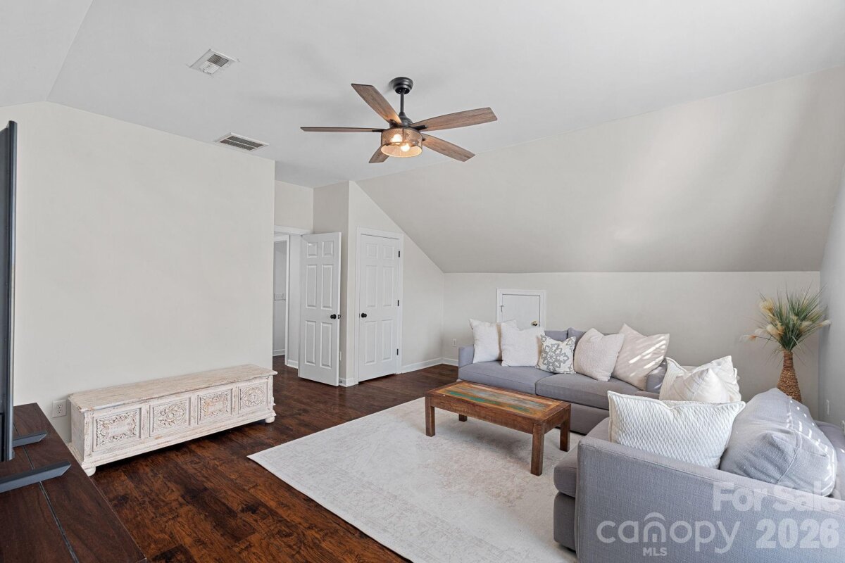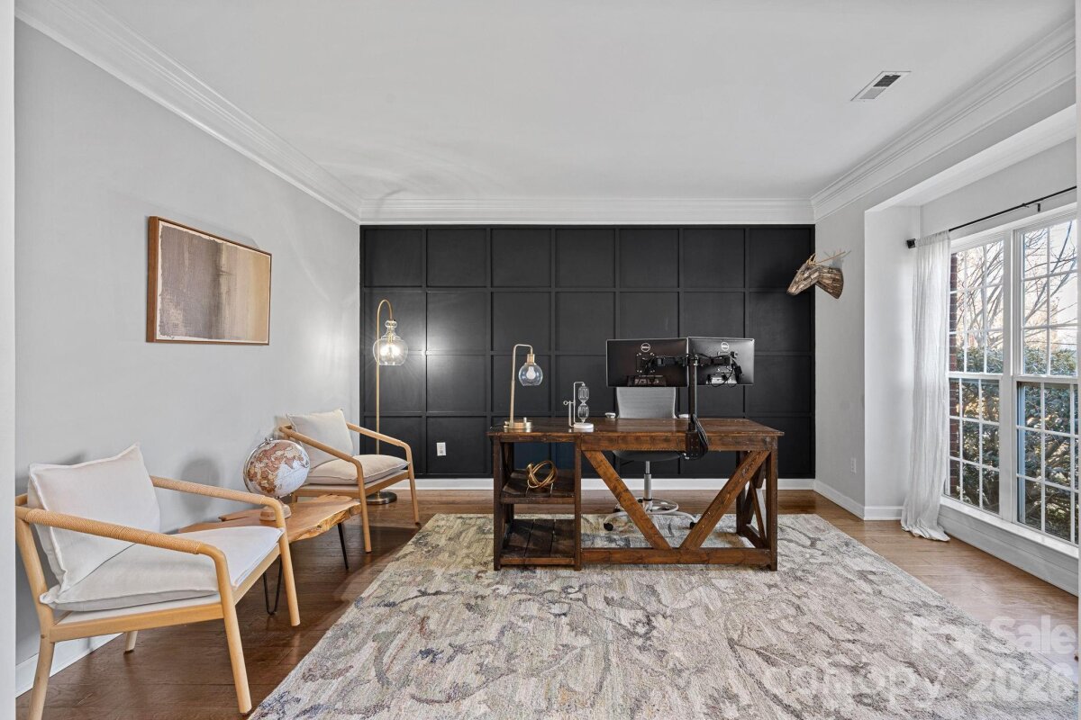 Move-in ready and extensively updated in Stonegate, this Waxhaw home pairs high-end finishes with a layout built for real life and entertaining. The reimagined kitchen is the centerpiece, featuring white quartz surfaces, an oversized island with seating, a farmhouse sink, floor-to-ceiling cabinetry with deep drawer storage, and a walk-in pantry with built-in shelving and dedicated ventilation. A statement gas range and vent hood anchor the space, supported by a newly added gas line, with additional built-in appliances completing the setup. Hardwood floors and new recessed lighting elevate the main level, which also includes a private office, formal dining, a newly created mudroom, one full bedroom and an updated full bath. The living room opens to a screened porch through French doors, extending the living space outdoors. A three-car garage with built-in storage racks rounds out the space. Upstairs offers full LVP flooring, four additional bedrooms plus a bonus room, an updated Jack-and-Jill bath, a custom closet system, and two staircases for easy flow.