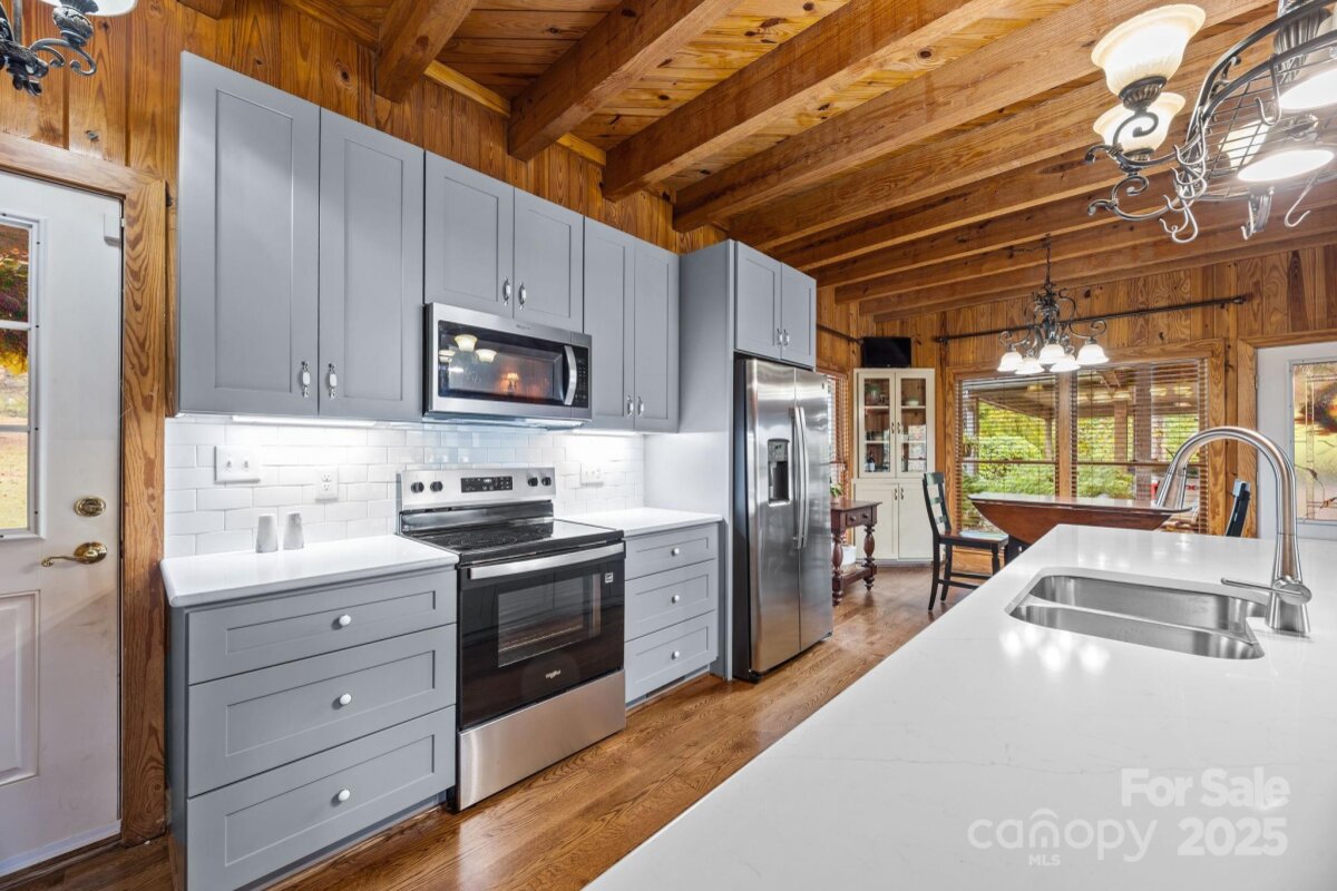 Presenting 1433 Kern Carlton Rd, Salisbury, NC – A Private Waterfront Retreat on High Rock Lake. Welcome to your dream escape! Nestled on the shores of High Rock Lake, this stunning property offers privacy, charm, and unparalleled natural beauty. A gated, tree-lined driveway sets the tone as it leads you to a spacious log cabin style home with breathtaking waterfront views. Lots of room to entertain yet with plenty of space for privacy. Enjoy outdoor living at its finest with a sparkling saltwater in-ground pool, fenced pastureland with barn, and plenty of room to roam. Ideal for multi-generational living or guests, the home features separate second living quarters. Whether you're seeking a personal retreat or a luxurious lakefront lifestyle, this unique property has it all. *Recent updates: new kitchen island, kitchen cabinets, kitchen countertops, new Whirlpool stove & microwave, refinished hardwood floors downstairs, new flooring & paint in laundry room, new heat pump downstairs. Primary bathroom has heat floors.