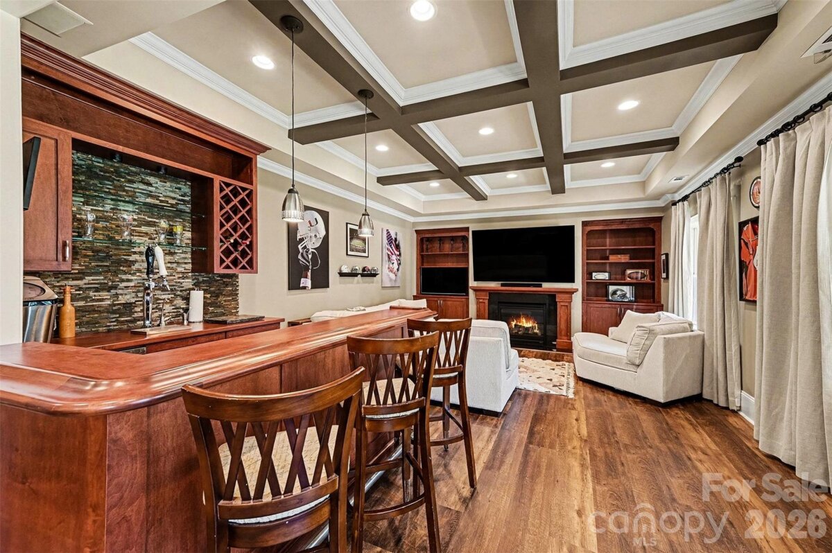 Welcome to this exceptional 6-bedroom, 5-bathroom estate in prestigious Weddington Chase, perfectly situated on a cul-de-sac lot and surrounded by a private, wooded backdrop that offers both serenity and privacy. Thoughtfully designed for refined living and effortless entertaining, this home combines timeless elegance with modern functionality. A light-filled two-story family room anchors the main level, creating an impressive yet inviting gathering space with soaring ceilings and an abundance of natural light. The gourmet kitchen is a true centerpiece, showcasing a full suite of Wolf appliances, including a gas range, double wall ovens, and a convection microwave, paired beautifully with a Sub-Zero refrigerator. Just off the kitchen, a scullery-style prep area with a beverage refrigerator enhances functionality, while the butler’s pantry off the dining room adds convenience and sophistication—ideal for hosting and holiday gatherings. From the kitchen, step onto the covered deck, perfect for outdoor dining, relaxing mornings, or year-round enjoyment.The thoughtfully designed floor plan offers exceptional flexibility on every level. The first floor includes a bedroom with a full bathroom, making it ideal for guests, multigenerational living, or a quiet home office. Upstairs, the home features the primary suite along with three additional bedrooms—one with a private ensuite and two connected by a Jack-and-Jill bathroom. The primary suite is a luxurious retreat, complete with a sitting room and a private office off the bathroom that could easily be converted into a third walk-in closet, spa room, or dressing area.The fully finished basement dramatically expands the living space and offers endless possibilities for recreation and relaxation. This level features an expansive second family room, billiards area, full bar, fireplace, additional gas range, a bedroom with a full bathroom, and another versatile room ideal for an office, poker room, fitness space, or private retreat. Ample storage areas throughout the basement ensure practicality without sacrificing the home’s polished aesthetic.The heated saltwater pool serves as the centerpiece of this backyard oasis, surrounded by lush, wooded privacy for a true resort-style experience. A sprawling paver patio with a fire pit creates an inviting space for entertaining, while the fully irrigated yard ensures beautifully maintained landscaping year-round—perfect for enjoying all four seasons. Additional upgrades include newer Andersen windows and a whole-house water filtration system, enhancing both comfort and efficiency. Residents of Weddington Chase enjoy exceptional community amenities, including a newly updated clubhouse, fitness center, community pool with a massive slide, tennis courts, basketball courts, playground, sand volleyball, walking trails, and a scenic neighborhood pond. For added peace of mind, the community is equipped with Flock security at both entrances.With its expansive layout, luxury finishes, thoughtfully designed living spaces, and premier cul-de-sac setting—along with access to top-rated Marvin schools—this Weddington Chase home offers a rare opportunity to enjoy refined living in one of the area’s most desirable communities