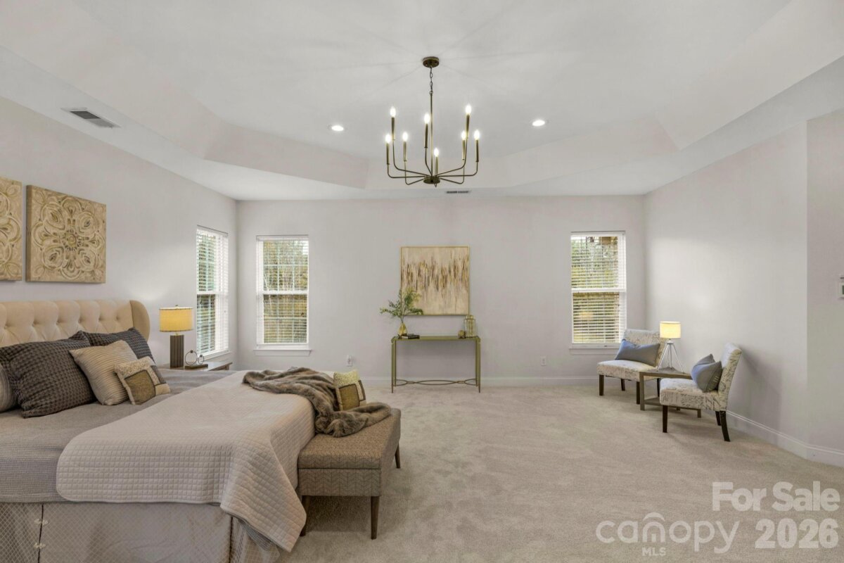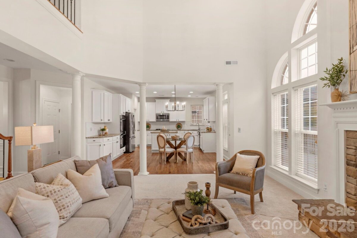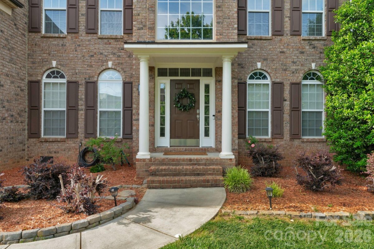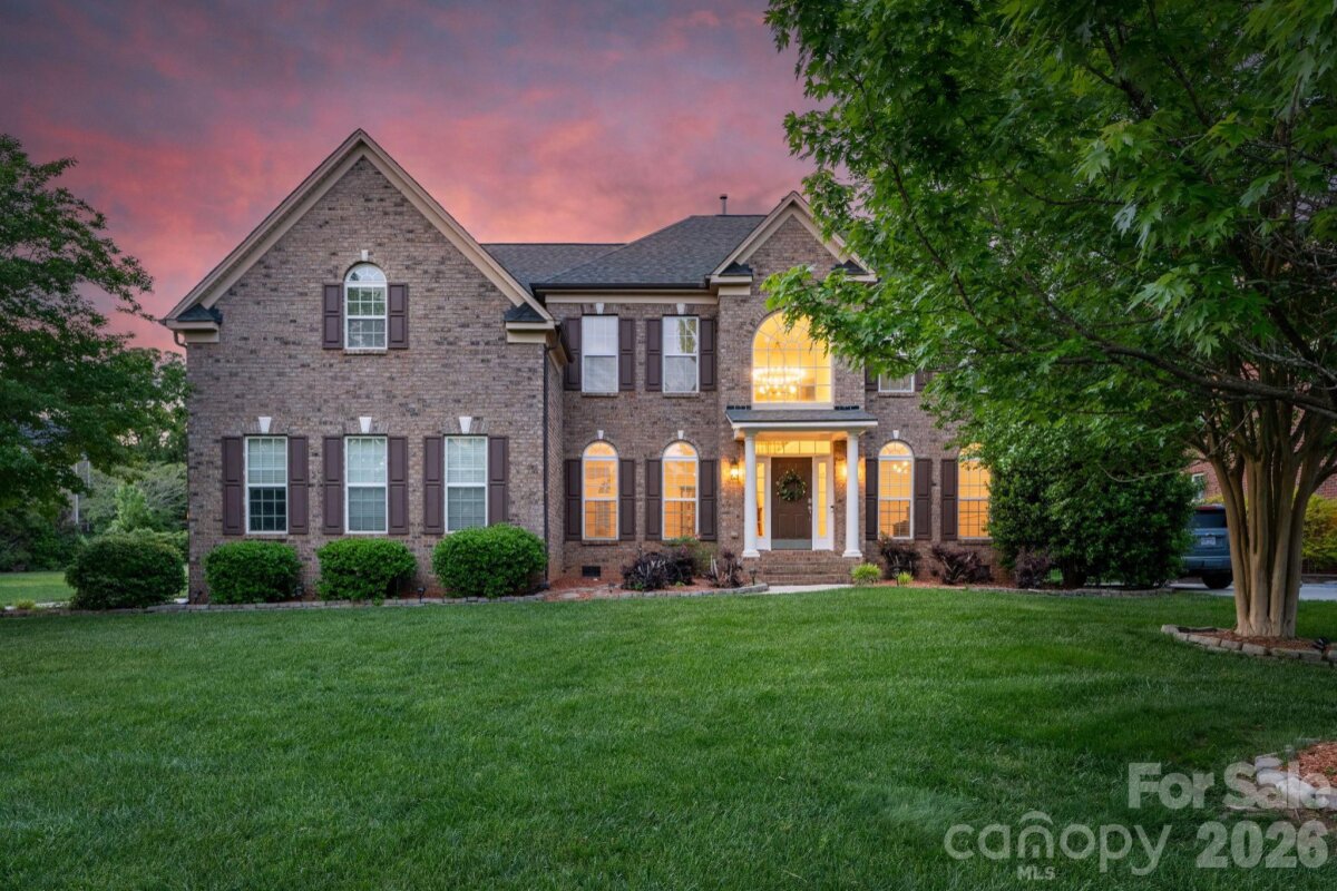 BRAND NEW ROOF, NEW CARPETING, FRESHLY PAINTED, ELEVATED LIGHTING & ENCAPSULATED CRAWL SPACE! Welcome to this beautiful full brick home in sought-after Weddington Trace Estates. Step into the striking 2-story foyer, which sets the tone within. A private office with French doors offers the perfect space for work or study. This spacious home features 5 bedrooms and 3 baths, including a guest suite on the main level—ideal for extended family or visitors. Entertain with sophistication in the formal dining room, or unwind in the expansive 2-story great room, complete with a gas fireplace and a stunning wall of windows that bathe the space in natural light. The gourmet eat-in kitchen, overlooking the open floor plan, is perfect for seamless everyday living and entertaining. Upstairs, retreat to the large primary suite, which boasts his-and-her walk-in closets, along with generously sized secondary bedrooms. Escape outside to elite privacy as this amazing backyard is surround by a canopy of mature trees & features a fantastic deck, paver patio & fire-pit. Weddington Trace is an amenity rich community with walking trails, clubhouse, outdoor Jr. Olympic Pool, Splash Pool, Game Court, Pickle Ball Court, Tennis Court & Stocked Pond and Dock.