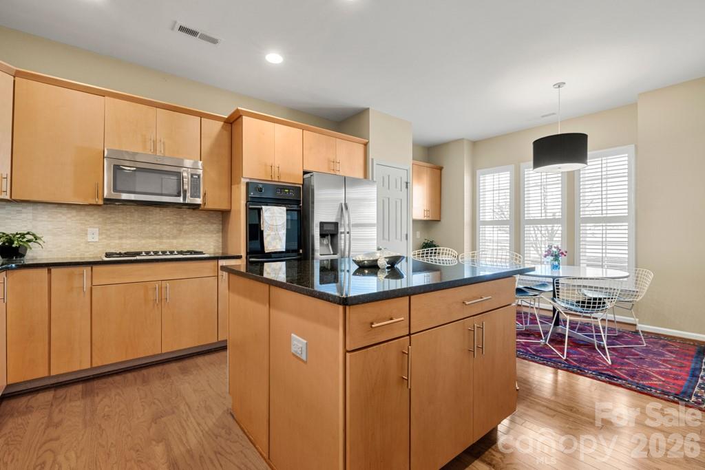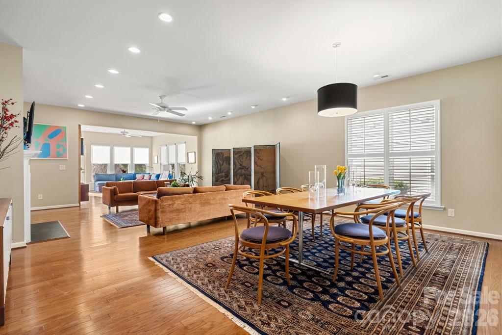 Beautiful Willow Bend model filled with natural light and inviting living spaces designed for comfort and everyday enjoyment. Warm wood flooring flows through the main living areas, and a welcoming foyer with transom window and glass-paneled front door creates a bright first impression. The fully updated kitchen is a true centerpiece of the home, featuring abundant upgraded cabinetry on both sides of the large granite island, double ovens, a gas cooktop with microwave above, tile backsplash, pull-out drawers, carousel corner cabinet, and upgraded disposal. The kitchen opens seamlessly to the dining area and spacious great room with fireplace, creating an ideal space for everyday living and entertaining. Plantation shutters add timeless charm to the kitchen, dining room, and primary bedroom. The sunny breakfast area is surrounded by windows and overlooks the front yard, providing a welcoming spot to enjoy morning coffee. The bright Sun Room offers a relaxing retreat with walls of windows—perfect for reading, hobbies, or simply enjoying the peaceful setting. Just outside, the landscaped brick patio with wooded view creates a private outdoor space for relaxing or gathering with friends. The home offers three bedrooms, providing comfortable accommodations for guests along with flexible space for a home office or hobby room. The spacious primary suite features plantation shutters and a well-designed en-suite bath with dual sinks, a separate vanity, and a walk-in shower, creating a functional and comfortable layout. Located in Sun City Carolina Lakes, residents enjoy a vibrant active-adult lifestyle with resort-style amenities including championship golf, indoor and outdoor pools, fitness center, tennis and pickleball courts, walking trails, lake access, woodworking and craft studios, social clubs, and a full calendar of activities designed for connection, recreation, and everyday enjoyment