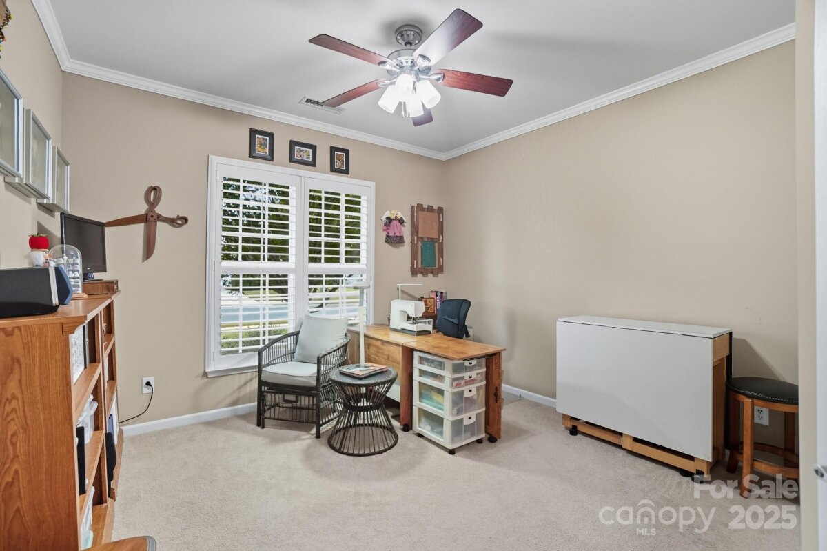Welcome home to Sun City and relax in the bounty of the Crestwood Meadow w/ a 3 season room! This home has many upgrades: crown molding throughout, upgraded lighting, gas fireplace, wood flooring in the living areas, garage w/ a 4ft bump out and much more! Cook in the gourmet kitchen with granite counters, spacious island w/ bar seating, SS appliance including wall oven, built-in microwave and gas cooktop w/ overhead vent, tile backsplash and flooring, pantry and breakfast nook. Host dinner parties for your guests in the large, adjacent formal dining room featuring wainscotting accents and tray ceiling. The primary bedroom rests in the rear of the home for serene relaxation, with large windows, tray ceiling (w/ fan), and an en suite boasting dual sink vanity, tile flooring, custom tile shower, soaking tub, and large walk-in closet. Two additional guest bedrooms and an office have access to a full hall bathroom. The spacious 3-season room has tile floors, ceiling fan, and insulated glass windows looking out to the extended paver patio with a pergola and wooded views.