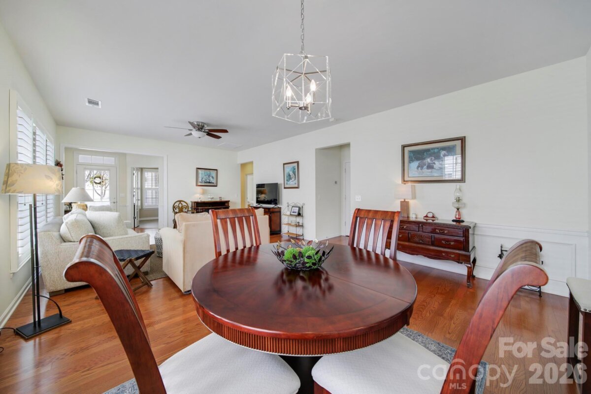 Welcome to this beautifully maintained Pine Spring model in the highly sought-after Sun City Carolina Lakes, where comfort, style, and vibrant community living come together. A charming, covered entryway sets the tone as you arrive, inviting you into a thoughtfully designed interior. Just off the foyer, elegant french doors open o a versatile study - ideal for a home office, library, or creative retreat. The main living space is designed with both everyday living and entertaining in mind, featuring a seamless flow between the living room and dining area. The dining space is enhanced by classic wainscoting, adding a touch of sophistication and character. The kitchen is both functional and inviting, offering stainless steel appliances, a stylish tile backsplash, and a cozy breakfast nook perfect for casual meals. A subtle half wall provides definition while maintaining an open, connected feel, ideal for entertaining. Tucked away at the rear of the home, the private primary suite offers peaceful backyard views and a relaxing retreat. Double doors lead into the ensuite bath, complete with a dual sink vanity, a walk-in shower with sliding glass doors, and a spacious walk-in closet with custom storage solutions. A generously sized secondary bedroom is located at the front of the home, with convenient access to a full hall bath - ideal for guests. Step outside to the inviting three-season room, where you can unwind and enjoy warm Carolina evenings while taking in serene backyard views. Newer HVAC, Furnace & Hot Water Heater - 2023. Culligan Reverse Osmosis Water Filter System. Living in Sun City Carolina Lakes means access to an exceptional array of resort-style amenities, including golf, indoor and outdoor pools, tennis and pickleball courts, scenic walking trails, state of the art gym, community Lake House, Lodge and a wide variety of clubs and social activities - offering a lifestyle as active or relaxed as you desire. Conveniently located to shopping, grocery, restaurants, banking & medical, right outside your door. This home is the perfect blend of comfort, elegance, and community - ready for you to enjoy.