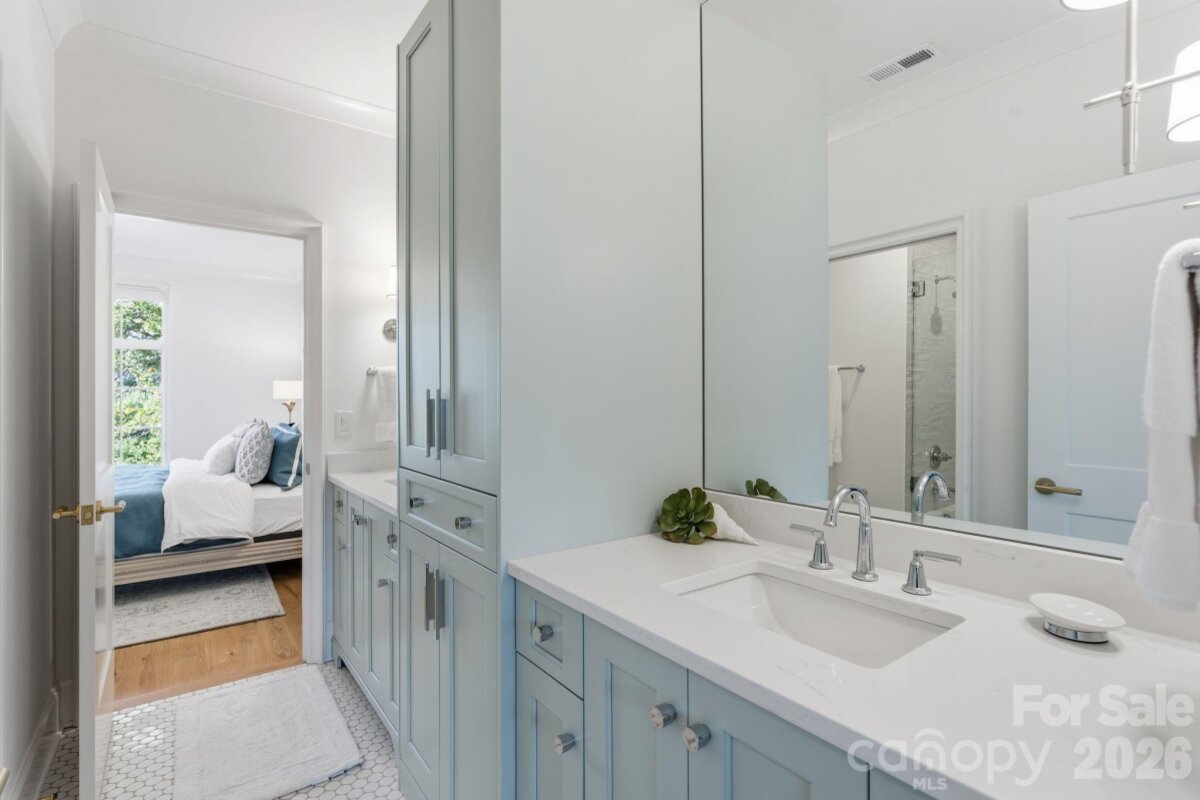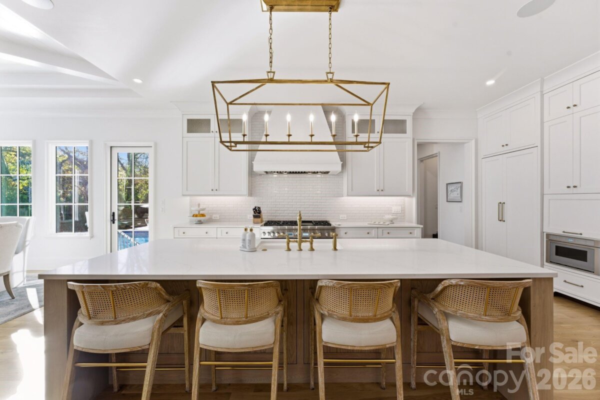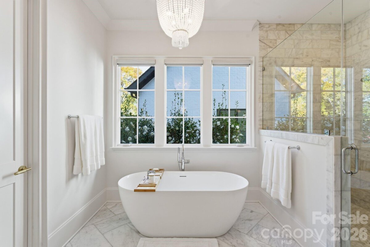 Welcome to an extraordinary modern estate, completed in 2023, in the heart of Myers Park, where refined architecture and modern elegance converge. A grand, light-filled interior unfolds through an expansive open floor plan, anchored by a main-level primary suite and private guest retreat, each designed with a sense of quiet luxury. The primary sanctuary is complemented by a spa-caliber bath, featuring a sculptural soaking tub, marble walk-in shower, dual vanities, and an impeccably designed bespoke dressing room. The culinary space is both striking and functional, centered around a statement white oak island with luminous quartz surfaces and appointed with a suite of professional-grade appliances by Thermador, Wolf, and Sub-Zero. White oak floors extend throughout, while soaring vaulted and coffered ceilings, tailored millwork, and curated designer lighting create a layered and sophisticated aesthetic. Walls of glass invite abundant natural light, enhancing the home’s seamless flow and sense of scale. Upstairs, four beautifully appointed bedrooms are complemented by a private study, media lounge, and a flexible fitness or wellness space. Designed for elevated living and effortless entertaining, the covered outdoor terrace features a built in grill, beverage refrigerator, ice maker, fireplace, and integrated heating for year-round enjoyment. The grounds have been transformed with animal friendly turf, a 90-foot in-ground heated saltwater, Pebble Tec, Infinity edge swimming pool, surrounded by sandblasted textured marble and exquisite fire bowls adding a touch of elegance. Home equipped with a WHOLE HOUSE GENERATOR and fully integrated with a Control4 smart home system, offering a seamless and intuitive living experience. Welcome Home! Please see attached features for complete list of extraordinary details!