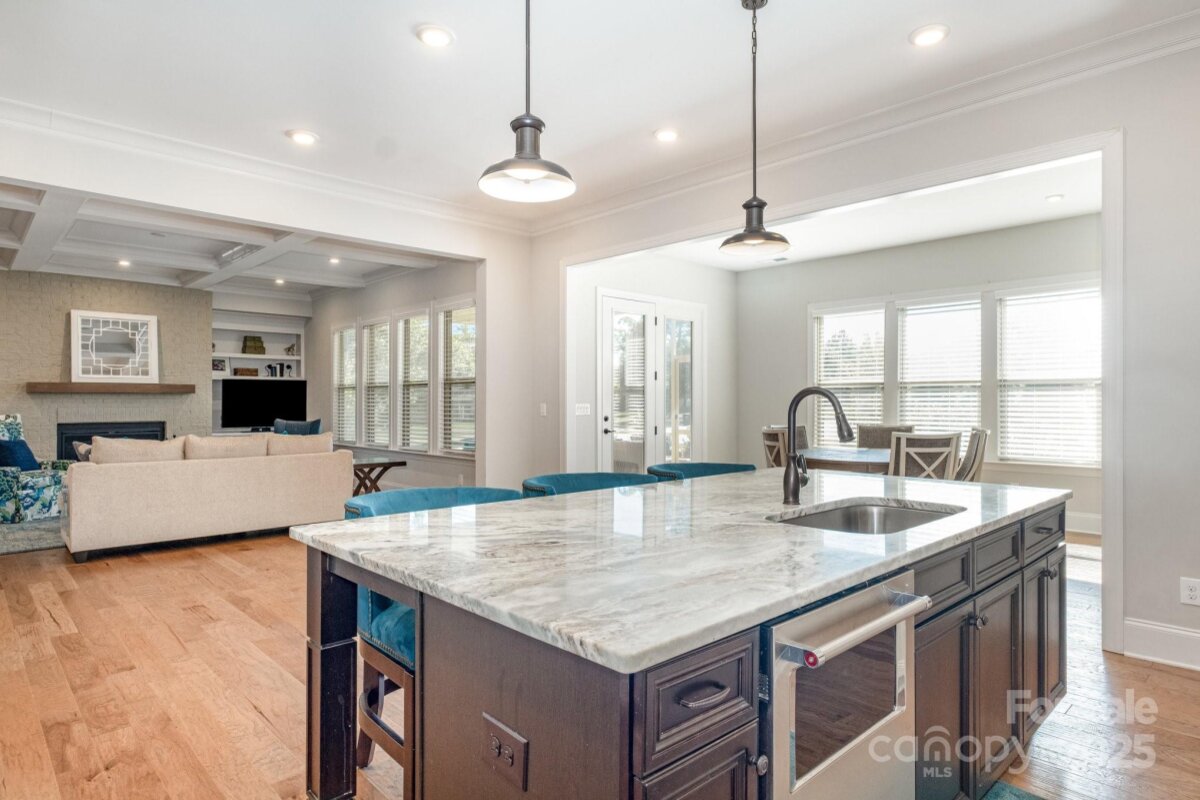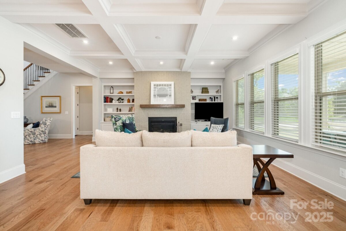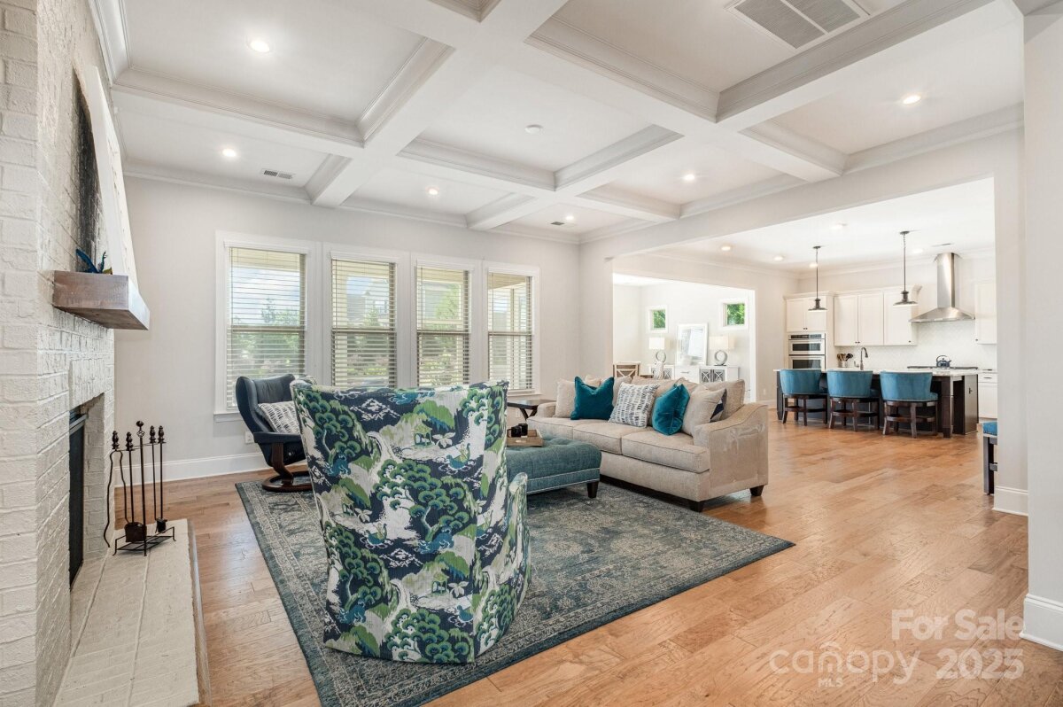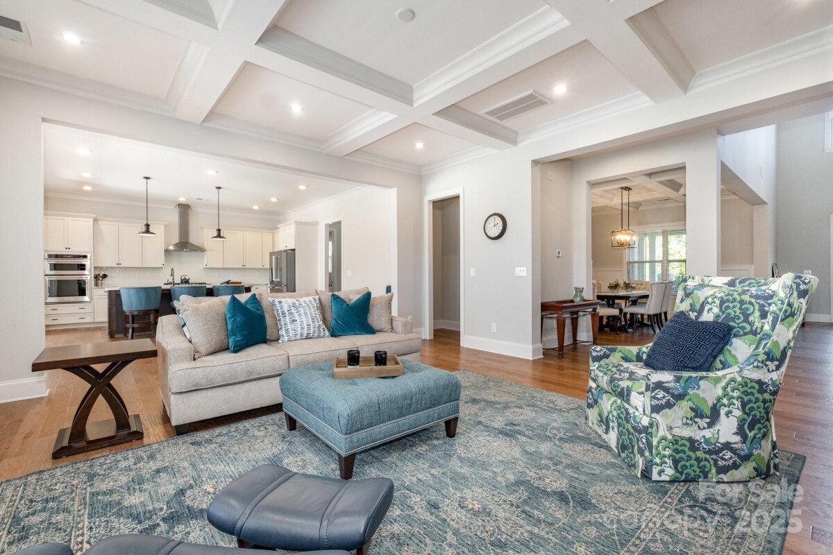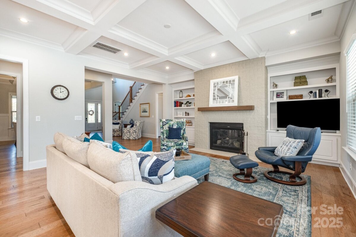 Home highlights casual spaces that fit today's lifestyles. The gourmet island kitchen includes exceptionally beautiful stone countertop overlooking a casual breakfast area. Area opens to inviting family room with built-in cabinetry and dramatic coffered ceiling. Covered porch. The main level boasts a formal dining room, popular study and private guest suite. Once on the second level, find a relaxing owner's suite punctuated by a spa-like bath with dual walk in closets, 3 additional bedrooms and loft.