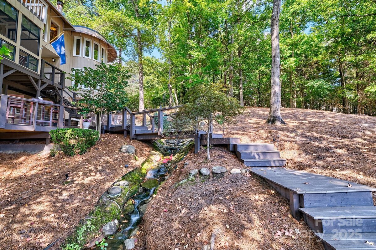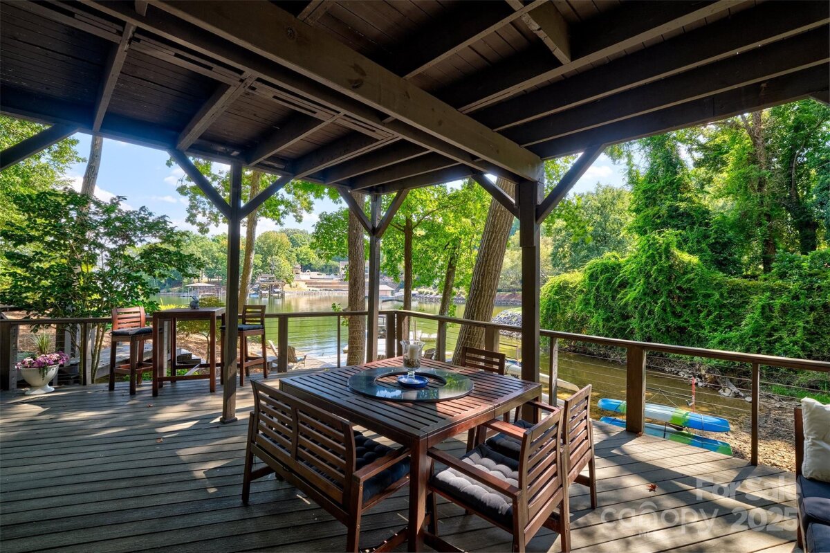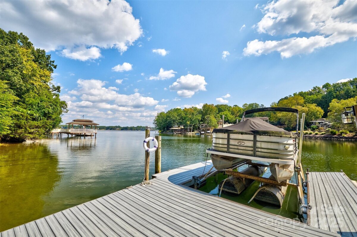 Welcome home to this amazing waterfront home nestled in the heart of Lake Wylie and River Hills neighborhood. Located in a quiet cove right off the main channel so easy access to anywhere on the lake you want to go. This home offers 4 bedrooms, 2 1/12 baths and so many outdoor living spaces to enjoy! Enjoy the babbling brook, the 4 season porch that feels like a tree house overlooking the water, 3 levels of decks - all done with trex decking - covered huge deck for outdoor dining, the dock with lift is even trex for maintenance free. Primary bedroom , luxurious bath and sitting room are on the top floor for dramatic views ! Main level offers 2 story great room with stacked stone fireplace and lots of windows, kitchen, dining room and seating area. The lower level offers 3 bedrooms, bathroom , laundry and access to outside for separate entrance. Could be multi generational living. The home has been meticulously maintained . The lake is calling! Come enjoy the views!