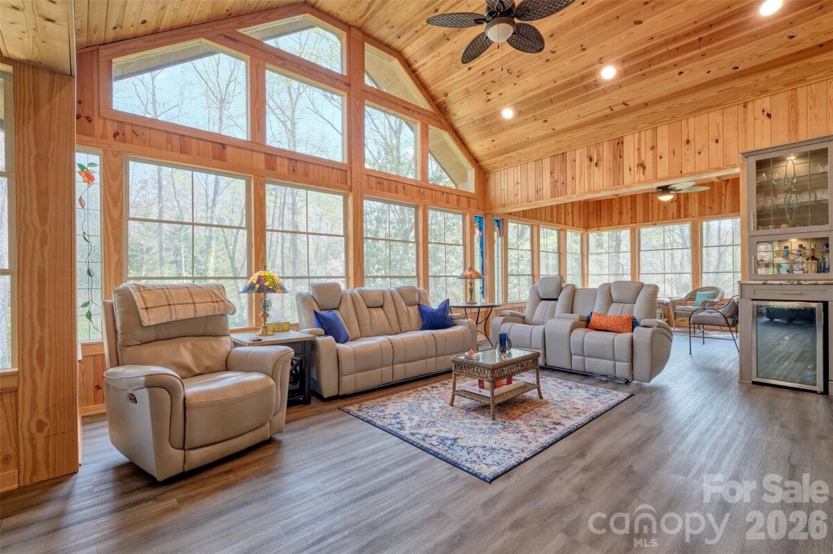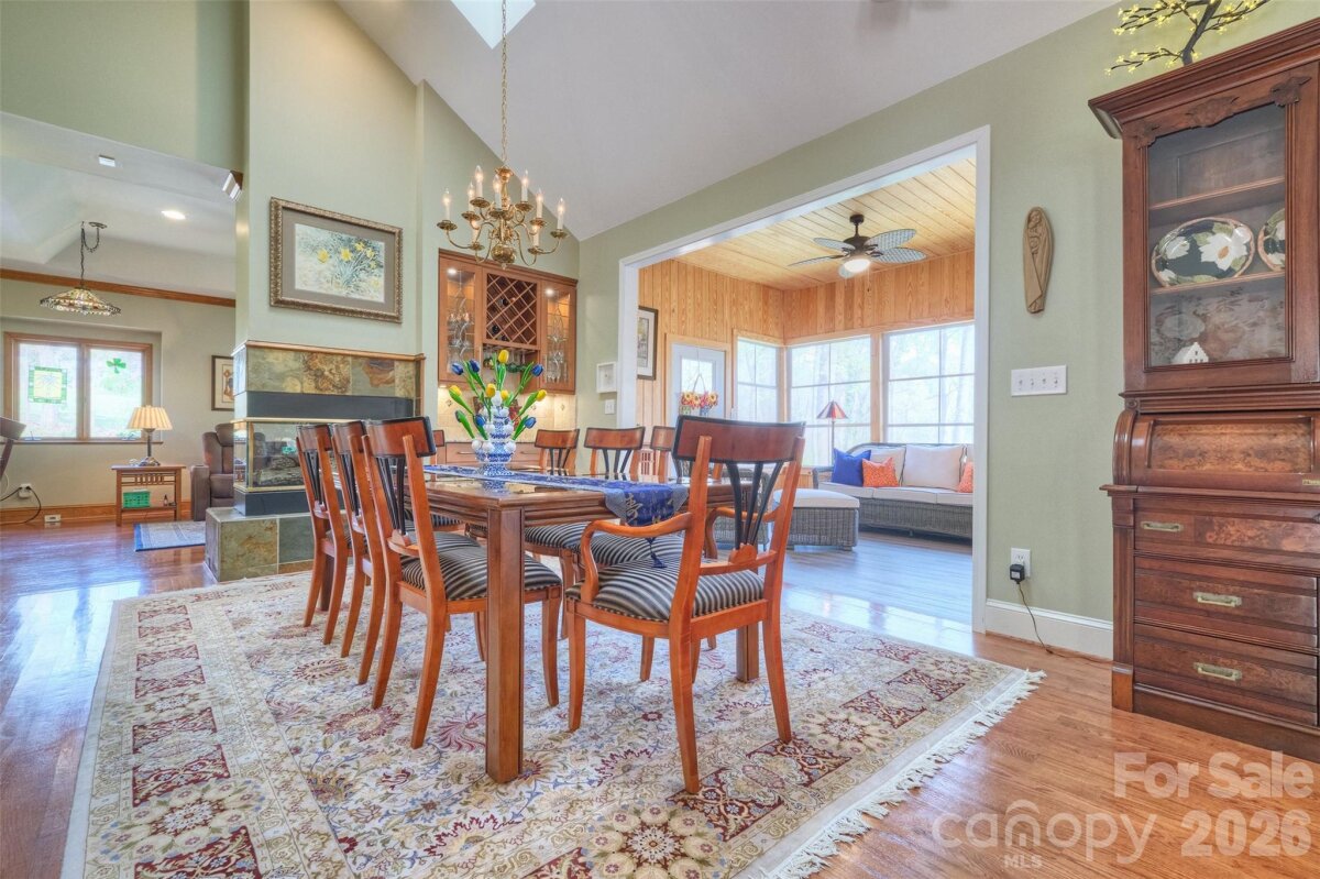 WELCOME HOME TO YOUR MOUNTAIN HOME FEEL BUT ALMOST ON THE LAKE! THIS 1 IS NESTLED IN THE TREES FOR A TREE HOUSE FEEL FROM YOUR OVER 700 SQUARE FOOT SUNROOM WITH CATHEDRAL CEILINGS AND SO MANY WINDOWS! TALK ABOUT BRINGING THE OUTSIDE IN! MAIN LEVEL LIVING INCLUDES PRIMARY BEDROOM AND BATH , OPEN KITCHEN WITH BUILT IN REFRIGERATOR, COZY DEN WITH 3 SIDED FIREPLACE, DINING ROOM, GREAT ROOM WITH 2 STORY CEILINGS ALSO , 1/2 BATH AND SUCH AN OPEN FLOOR PLAN. DOWNSTAIRS HAS 2 BEDROOMS AND BATH. SUNROOM ADDITION COMPLETED IN 2021. WHOLE HOUSE GENERATOR . GARAGE HAS CLEAN EPOXY FLOORING. WALK IN LAUNDRY ROOM ON MAIN FOOR FOR EASE AND ROOM. NO YARD WORK! THIS HOME SITS ON QUIET CUL DE SAC SO NO DRIVE BY TRAFFIC. RIVER HILLS IS A GATED COMMUNITY WITH 24/7 SECURITY, HAS COUNTRY CLUB W 18 HOLE COURSE AND 2 POOLS, TENNIS AND RACKETBALL OFFERED AT ADDITIONAL COSTS. WE ALSO HAVE A MARINA FOR RESIDENTS. NEIGHBORHOOD OFFERS MILES OF WALKING TRAILS, PLAYGROUNDS, DOG PARK, WATERFRONT PARK WITH SANDY BEACH AND PICNIC PAVILION, GARDENS AND MORE. THIS HOME IS ZONED FOR THE NEW LAKE WYLIE HIGH SCHOOL FOR FALL 2026. ENJOY LIFE AT THE LAKE!