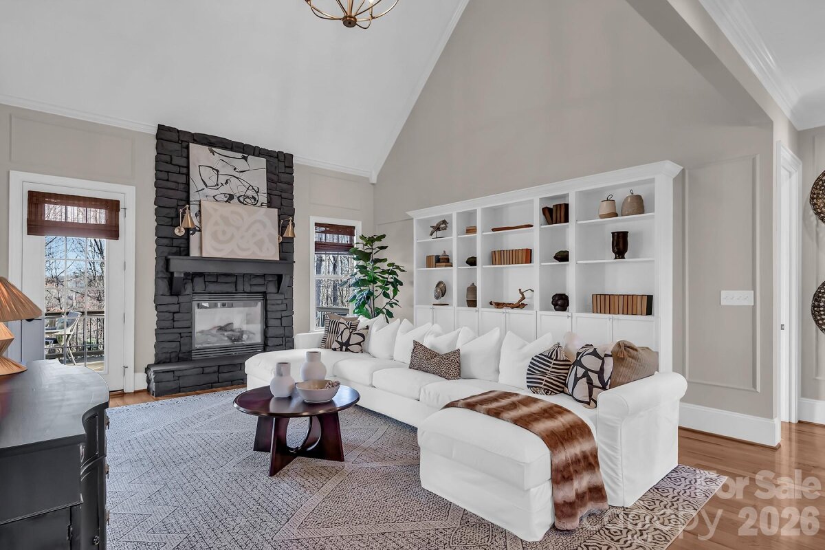 Stunning designer home located in a quiet cul-de-sac, offering exceptional space, luxurious finishes, and flexible living options ideal for today’s lifestyles. Zoned for NEW LAKE WYLIE HIGH SCHOOL! The FULLY FINISHED WALK OUT BASEMENT is a standout feature, perfect for a private guest suite, multigenerational living, or a comfortable mother-in-law retreat. It includes a private office with elegant French doors, a stylish wet bar with granite countertops, a spacious recreation room with an electric fireplace, a dedicated exercise room, a large bedroom, a full bath, and additional laundry hookups—providing both convenience and privacy. On the main level, you’ll find an updated gourmet kitchen that is truly the heart of the home. It boasts gleaming quartz countertops, tile backsplash, newer appliances, and a walk-in pantry that offers ample storage. Adjacent to the kitchen is a cozy keeping room with custom built-in cabinetry and a warm gas fireplace—an ideal spot to relax or entertain. The sunny breakfast nook features a charming built-in bench seat and offers a beautiful seasonal lake view, making every morning feel like a retreat. The main-level primary suite is a serene sanctuary, showcasing a double tray ceiling, a spa-inspired en-suite bathroom with quartz countertops, dual sinks, a garden tub, separate shower, and custom closet shelving designed for optimal organization. Upstairs, you'll find spacious secondary bedrooms, including one with its own private en-suite bath—perfect for guests. A massive bonus room provides versatile space that could easily be converted into a home theater, media room, or play area. Throughout the home, you’ll enjoy thoughtful upgrades such as three fireplaces, hardwood floors, and abundant natural light. This home grants access to award-winning Clover schools. There's a Marina, Boat Storage and Restaurant just a few miles away. Whether you're hosting family, working from home, or simply enjoying quiet evenings by the fire, this property delivers on every level.