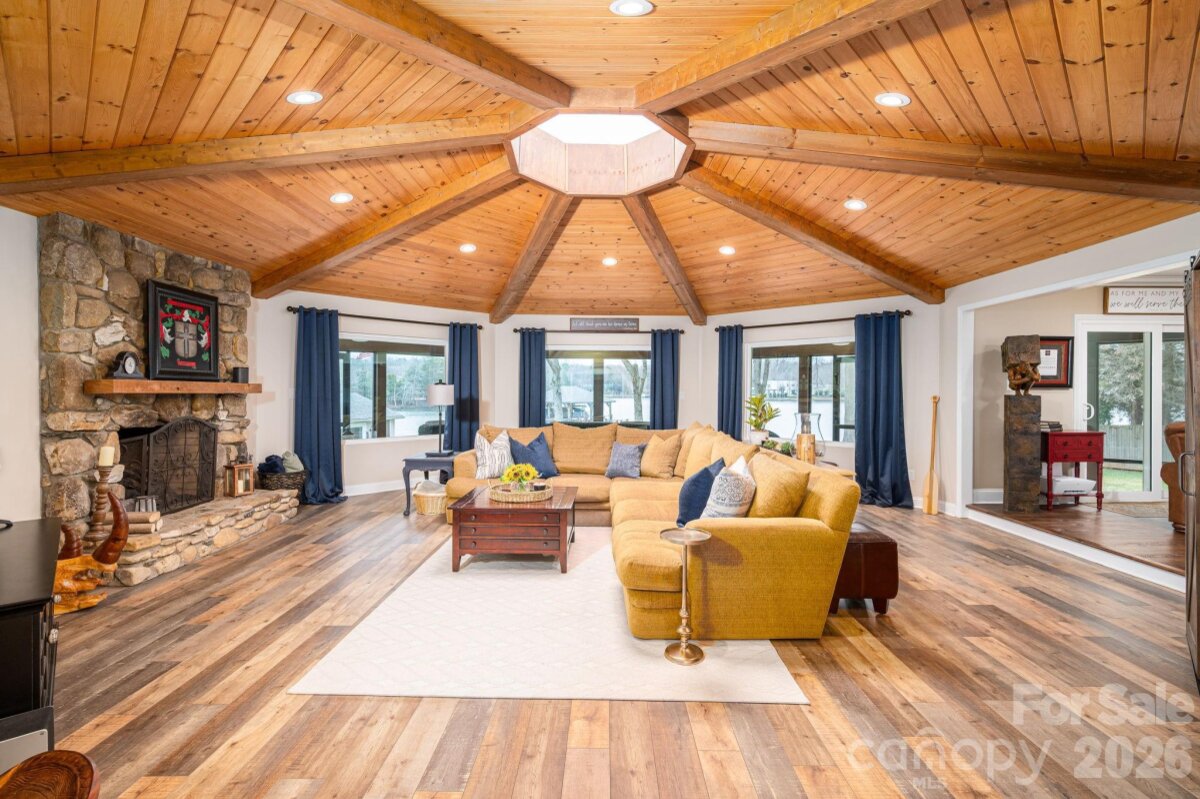 Truly, ONE OF A KIND! This Waterfront property not only features a gorgeous updated one-level home, but also a Guest house and a waterside "Boathouse". Situated on an exceptional RARE lot of over 1.6 acres, with BIG year-round water views. Tucked back from the main channel and wooded, offering exceptional privacy. A SC address and super close to NC. As you enter the main house, you are greeted with a great room that has a spectacular ceiling and exceptional views of the water, 3 bedrooms, 3.5 baths, flex space, kitchen perfect for gatherings. Brand new tankless water heater, roof (2025), sealed crawlspace, LVP flooring. Primary bedroom with ensuite, huge walk in closet and conveniently located laundry, with an additional location option for laundry as well. Two additional bedrooms. Drop zone that leads to the perfect "Man Cave" or could be an office, the possibilities are endless. Sip your coffee on the large screened porch with multiple views of the water. Grill out on back patio. 2-car oversized (28X28) garage. A separate guest house is also fully updated with a kitchen, living room, laundry, bed and bath. Perfect for guests, in-laws or parents. The waterside "Boathouse" adds a huge touch of fun and relaxation featuring an open game room area, built-in-beds, 3/4 bath, kitchen/bar, large covered deck to hang out and enjoy the water! A deep-water covered with boat lift and floating swim deck. Enjoy the waterside fire pit. Live paradise every day with this spectacular property! Great location with easy commutes to award-winning Clover schools, Charlotte Douglas Airport, Charlotte, Belmont and so much more. Schedule your showing to see this unique gem today!
