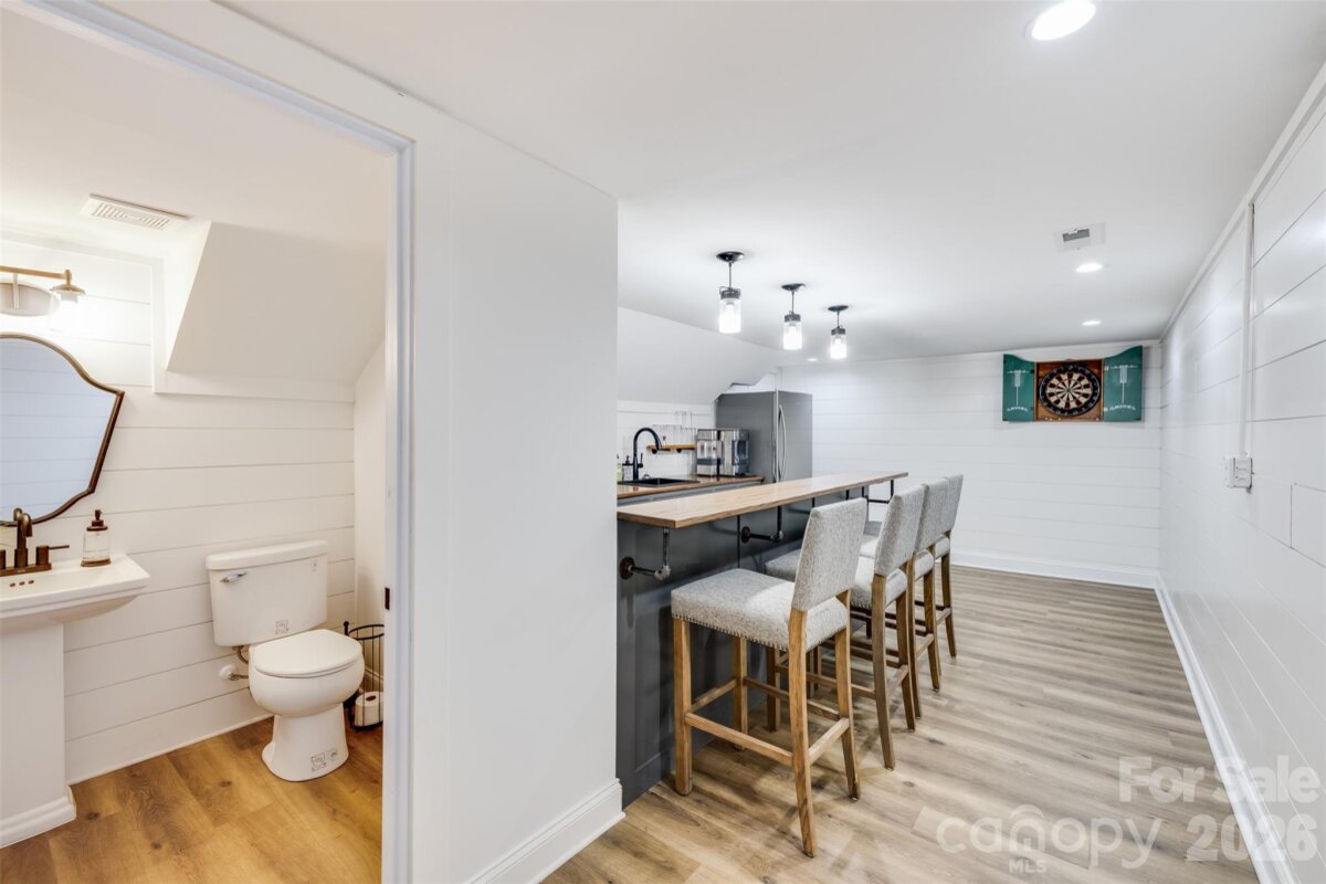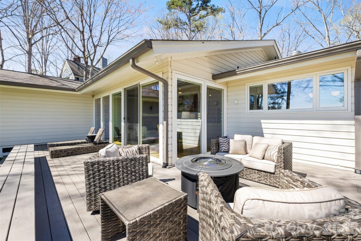 Welcome to 6 Pine Knoll Drive, a beautifully updated MCM ranch on the 1st fairway of the award winning River Hills golf course. Perfectly positioned on a half-acre lot, this fully remodeled interior showcases clean modern lines, wood & tile flooring, and expansive windows that frame serene golf course views. The open living and dining areas create a bright and inviting space ideal for both everyday living and an entertainers dream. The chefs kitchen is equipped with premium Viking appliances, quartz countertops with a waterfall edge, custom cabinetry, and a sunny breakfast nook. The spacious primary suite provides a relaxing retreat with a beautifully updated spa-inspired bathroom and private deck. Large secondary bedrooms are split from the primary with wood floors, plenty of natural light, large closets for each, and a jack n jill style en suite with private vanity and shared tub & toilet. The finished basement transforms the home into the ultimate entertainment hub, featuring a custom movie theater, a full-service bar, and a powder room perfect for game days, movie nights, or hosting friends and family. Outdoor living is just as impressive with expansive decking and peaceful golf course views that create a private backyard setting. River Hills residents enjoy 24-hour gated security, marina access, golf, tennis, pool, walking trails, a private beach, and a vibrant social calendar, all just a short drive from Charlotte, the airport, and area shopping and dining. This is a rare opportunity to own a move-in-ready golf course home in one of Lake Wylie's most desirable communities.